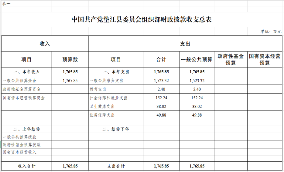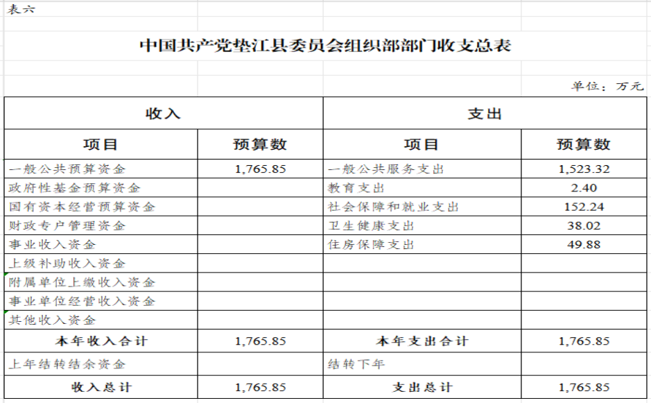 附表:1.中国共产党垫江县委员会组织部财政拨款收支总表