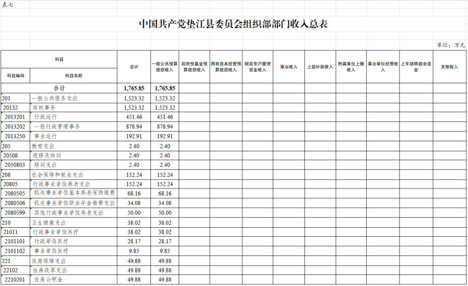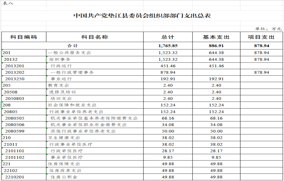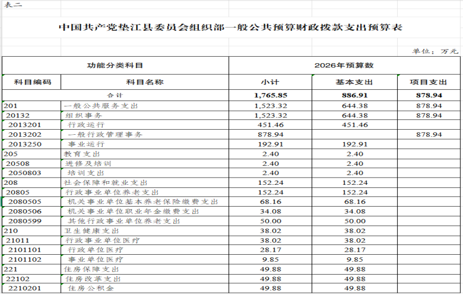 2.中国共产党垫江县委员会组织部一般公共预算财政
