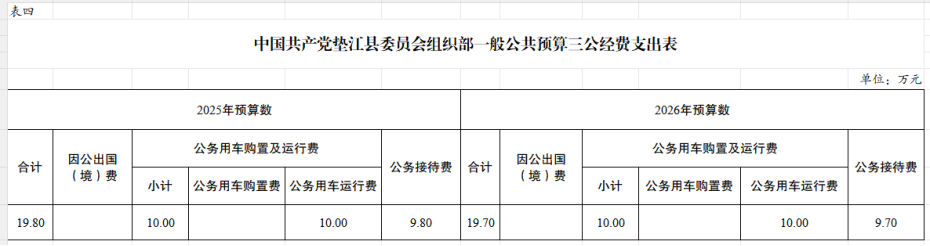 4.中国共产党垫江县委员会组织部一般公共预算“三
