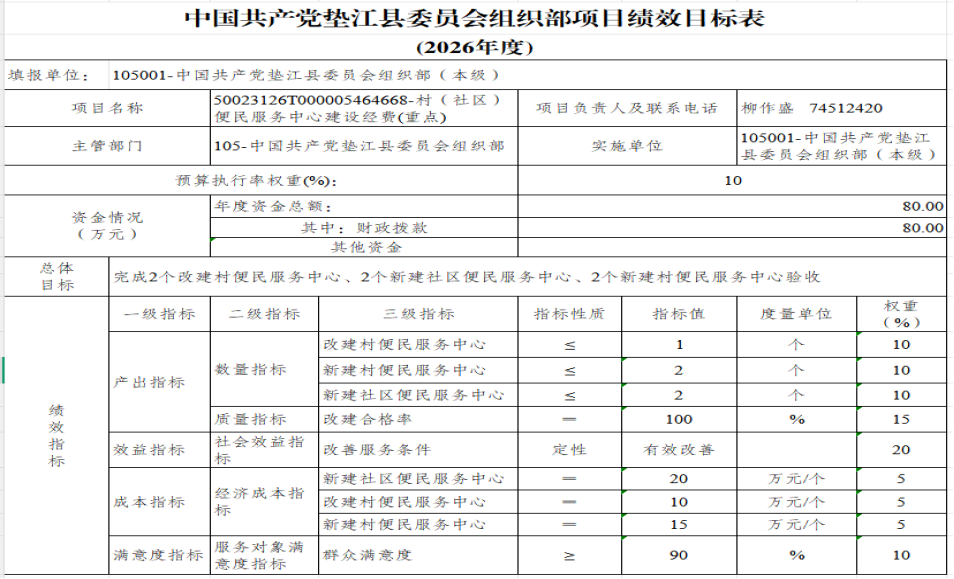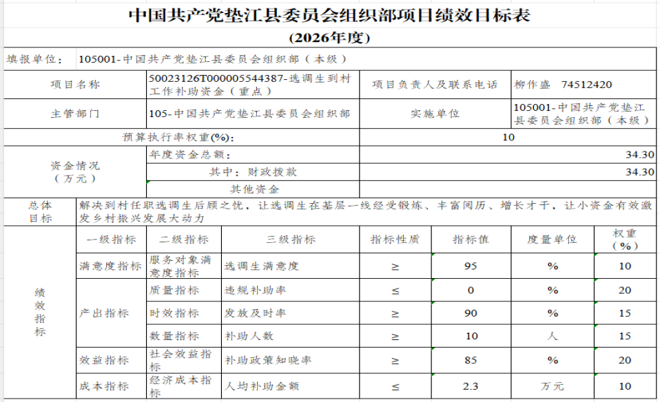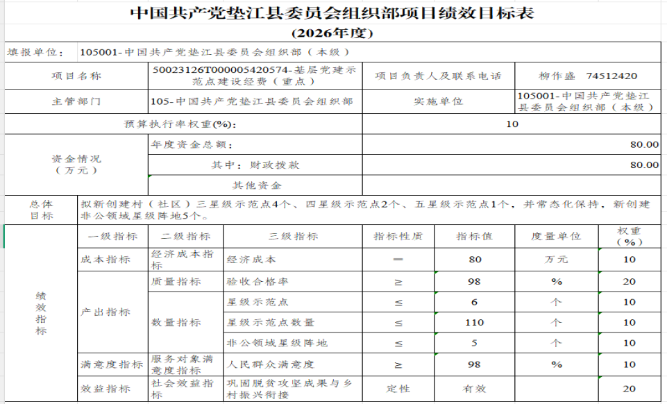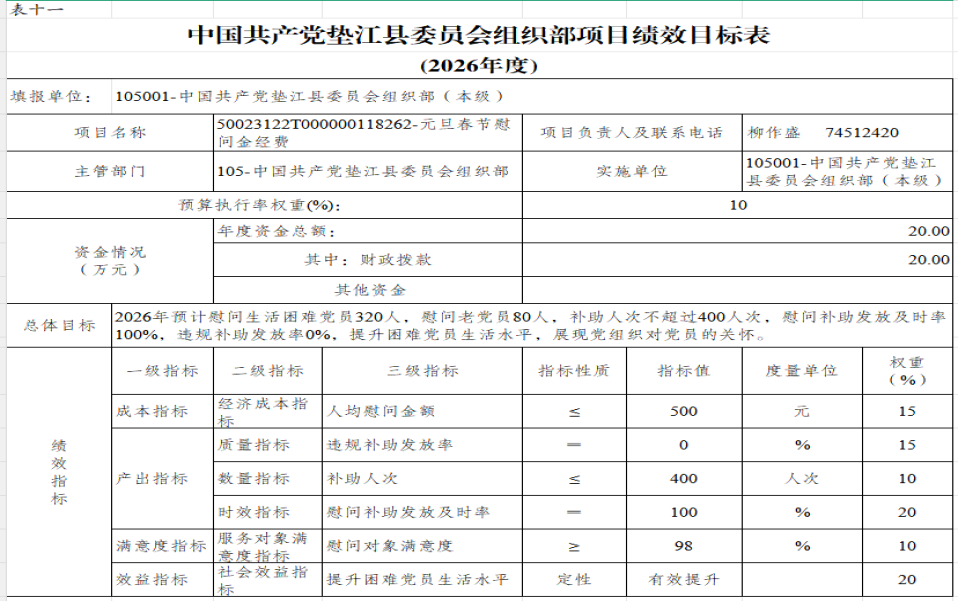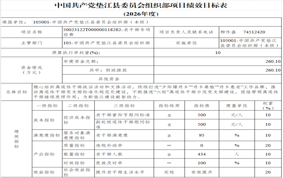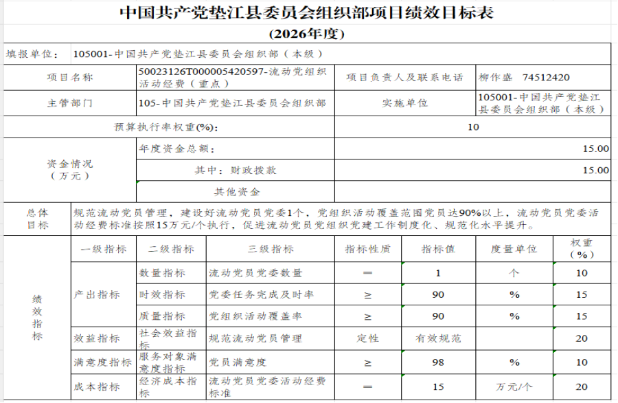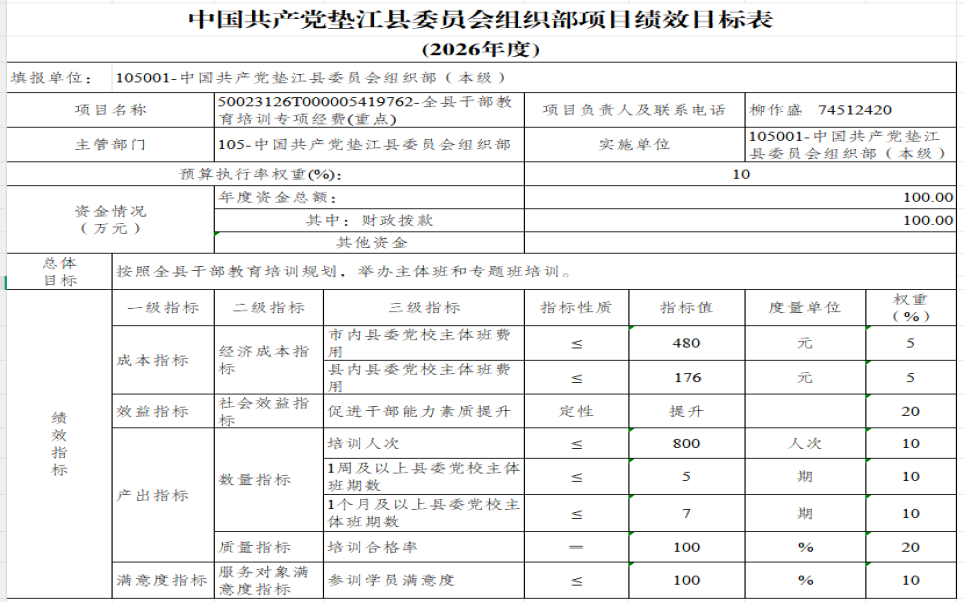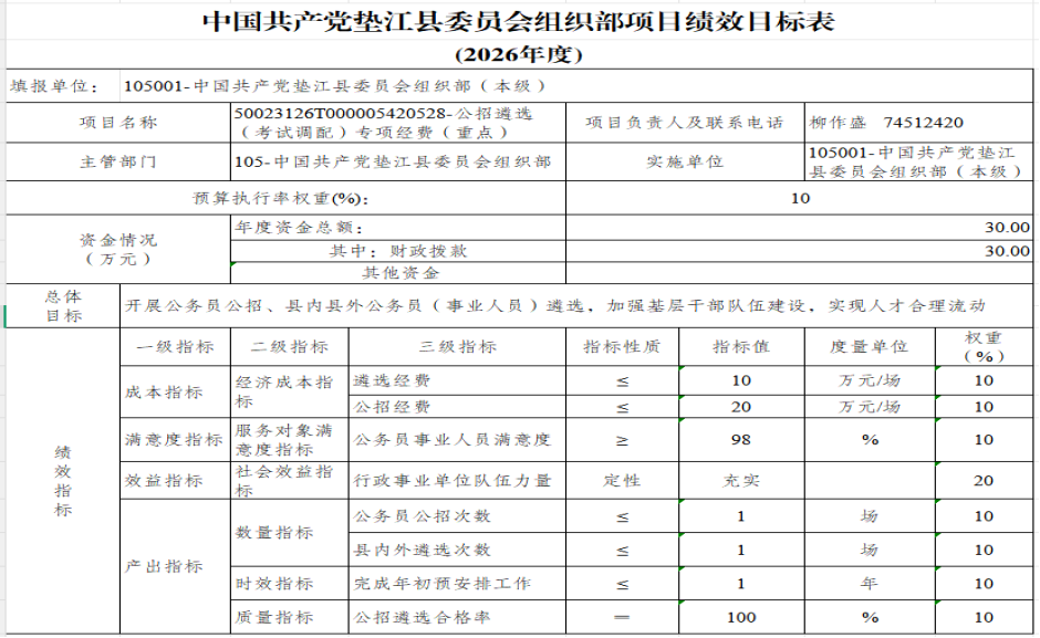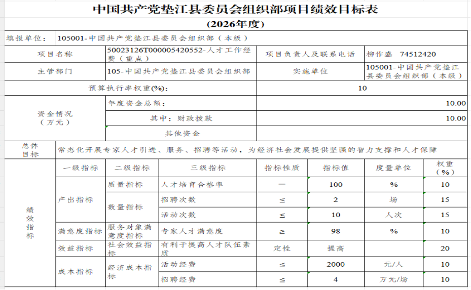 11.中国共产党垫江县委员会组织部2026年项目绩效