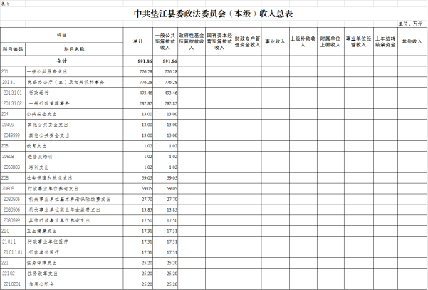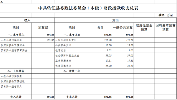 附表:1.中共垫江县委政法委员会(本级)财政拨款收支总表