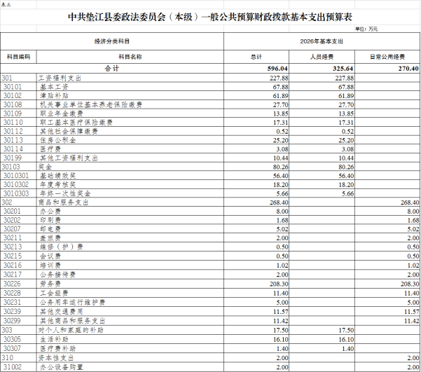 3.中共垫江县委政法委员会(本级)一般公共预算财政拨款基本支出预算 表