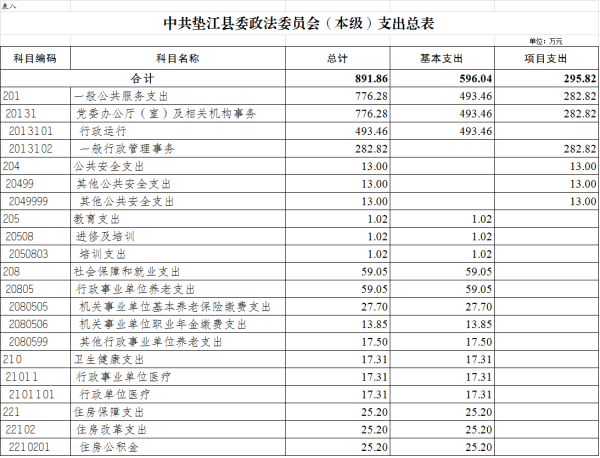2.中共垫江县委政法委员会(本级)一般公共预算财政拨款支出预算表