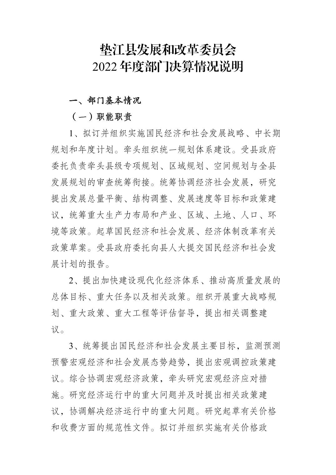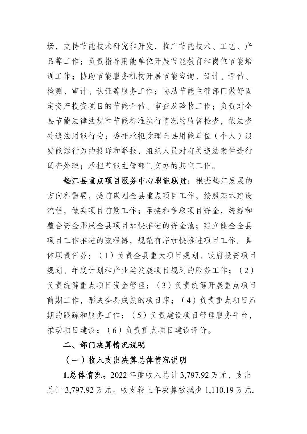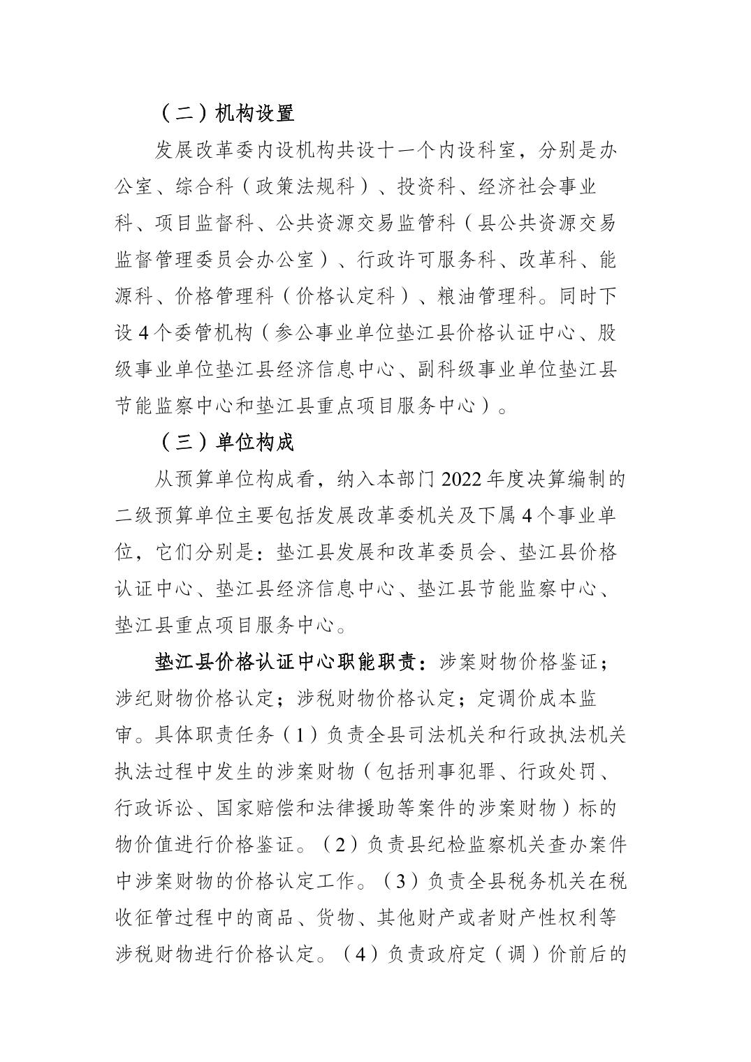 重庆市垫江县发展和改革委员会2022年度部门决算情况说明