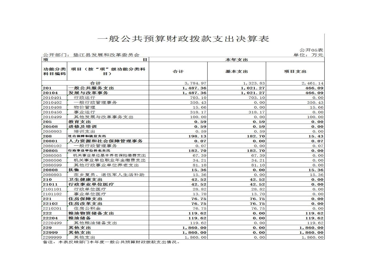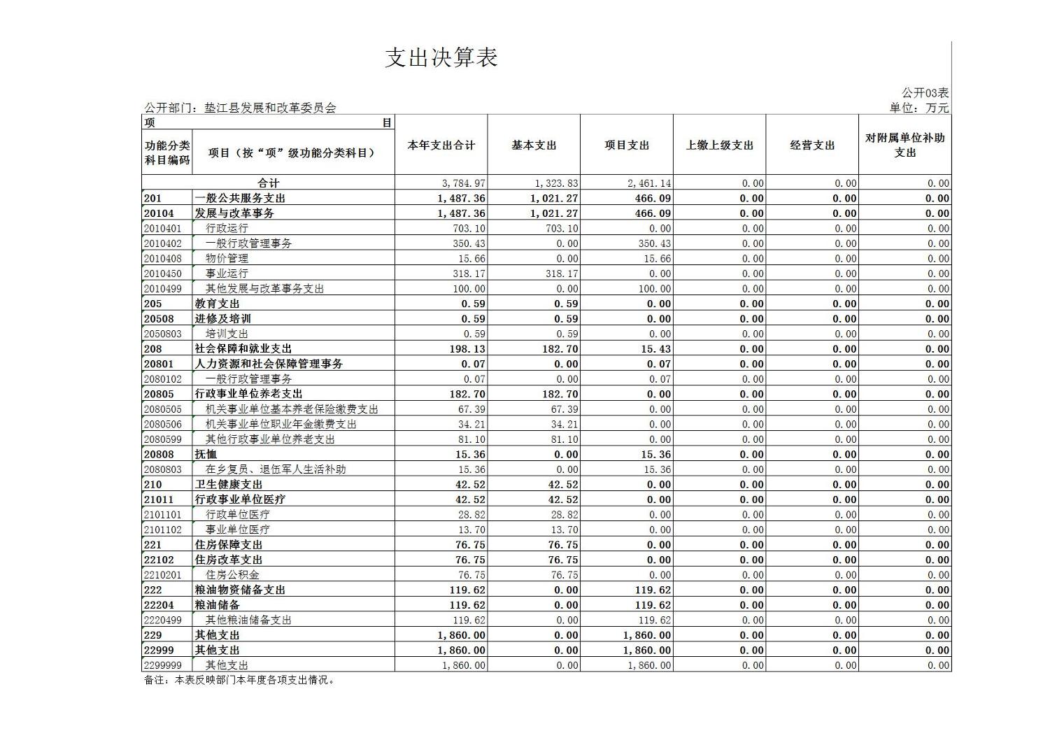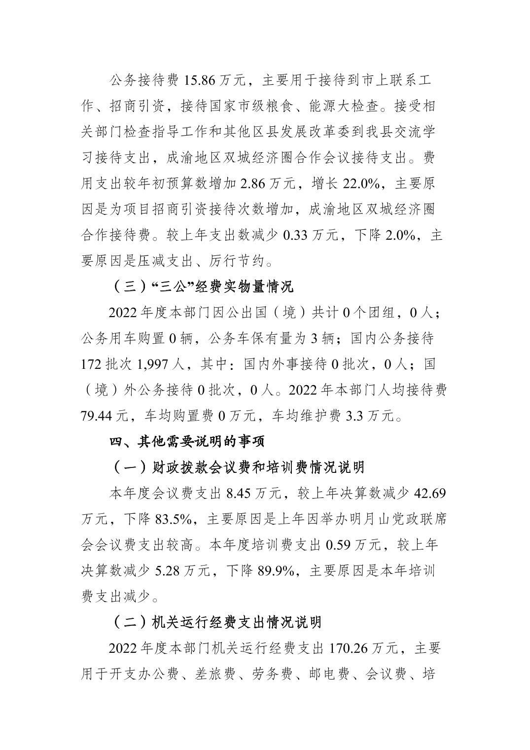 重庆市垫江县发展和改革委员会2022年度部门决算情况说明
