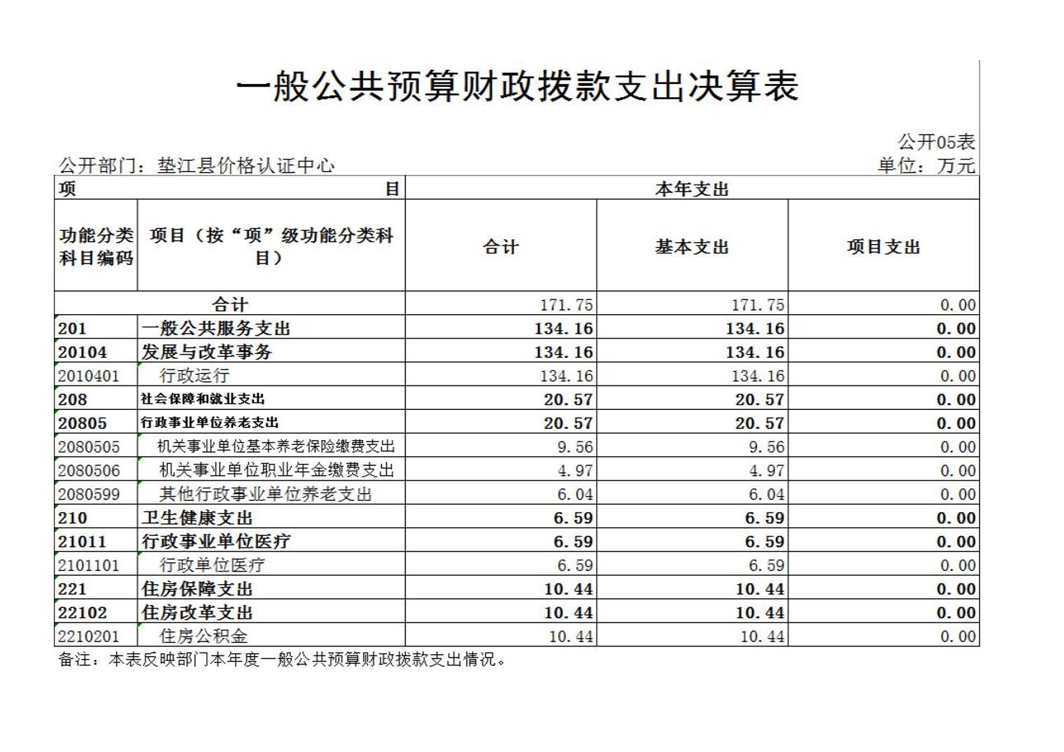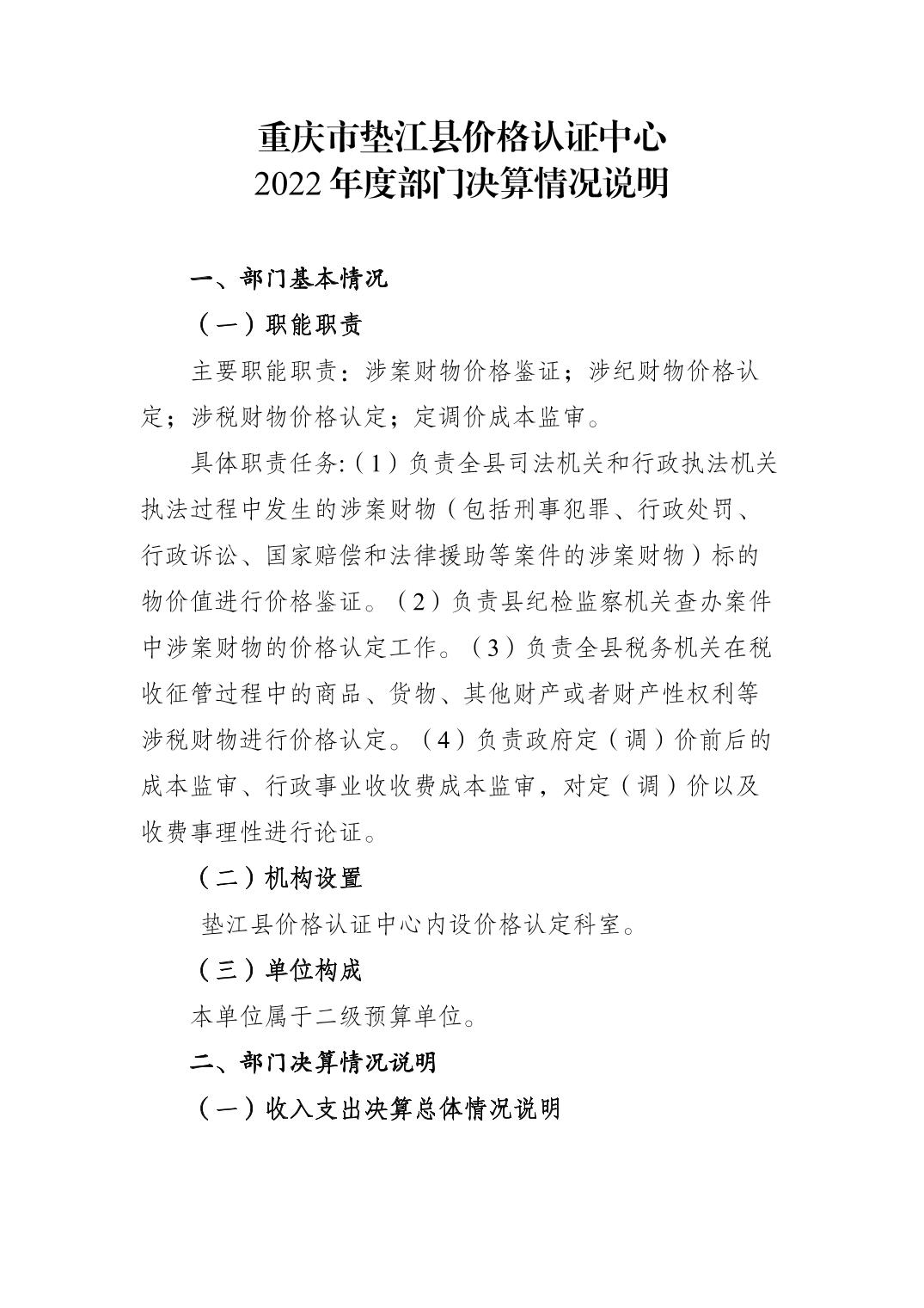重庆市垫江县价格认证中心2022年度部门决算情况说明