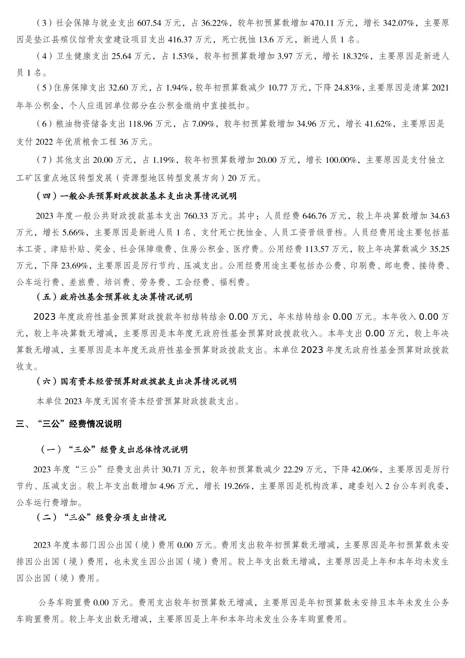 重庆市垫江县发展和改革委员会(本级)2023年度决算公开说明