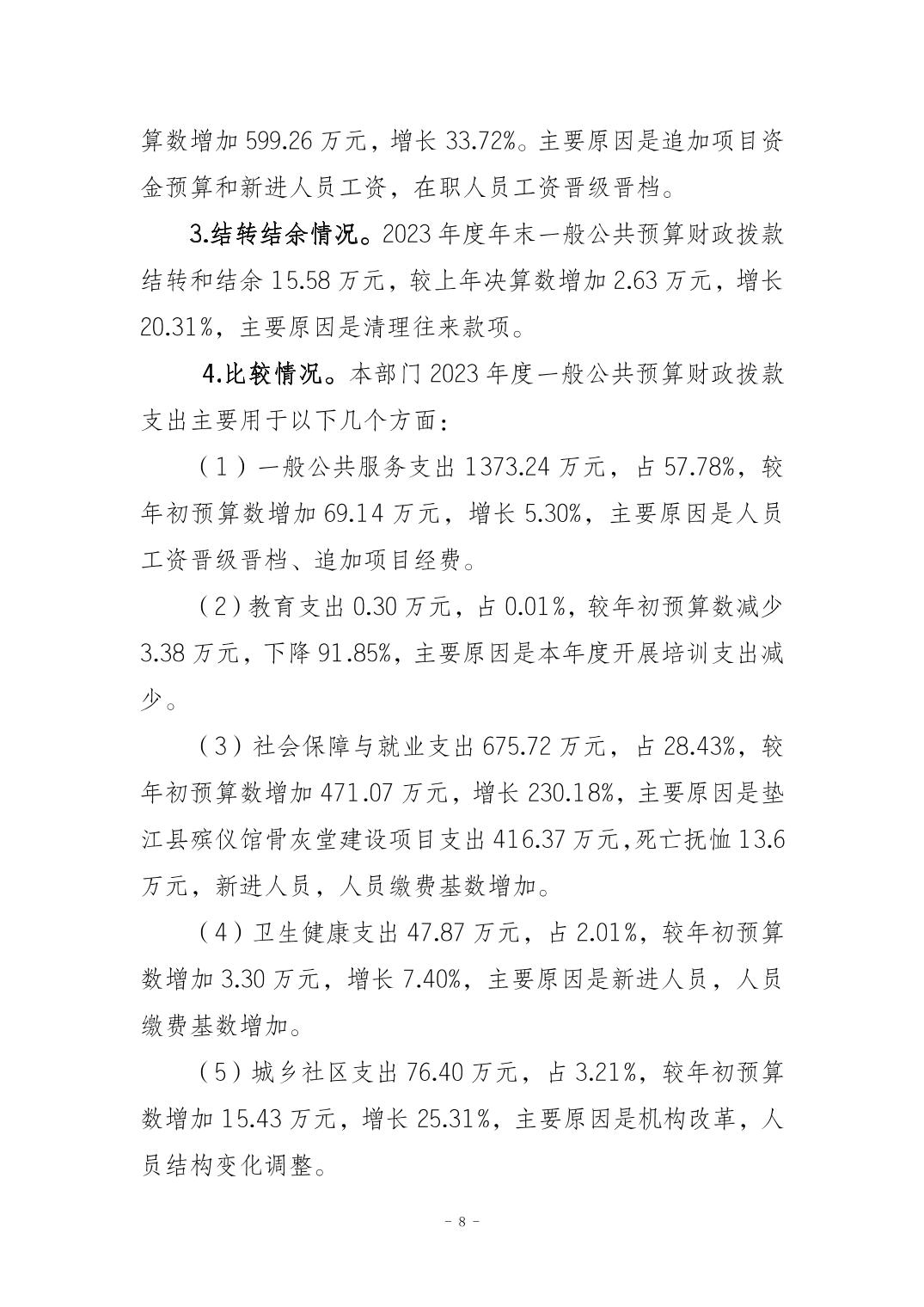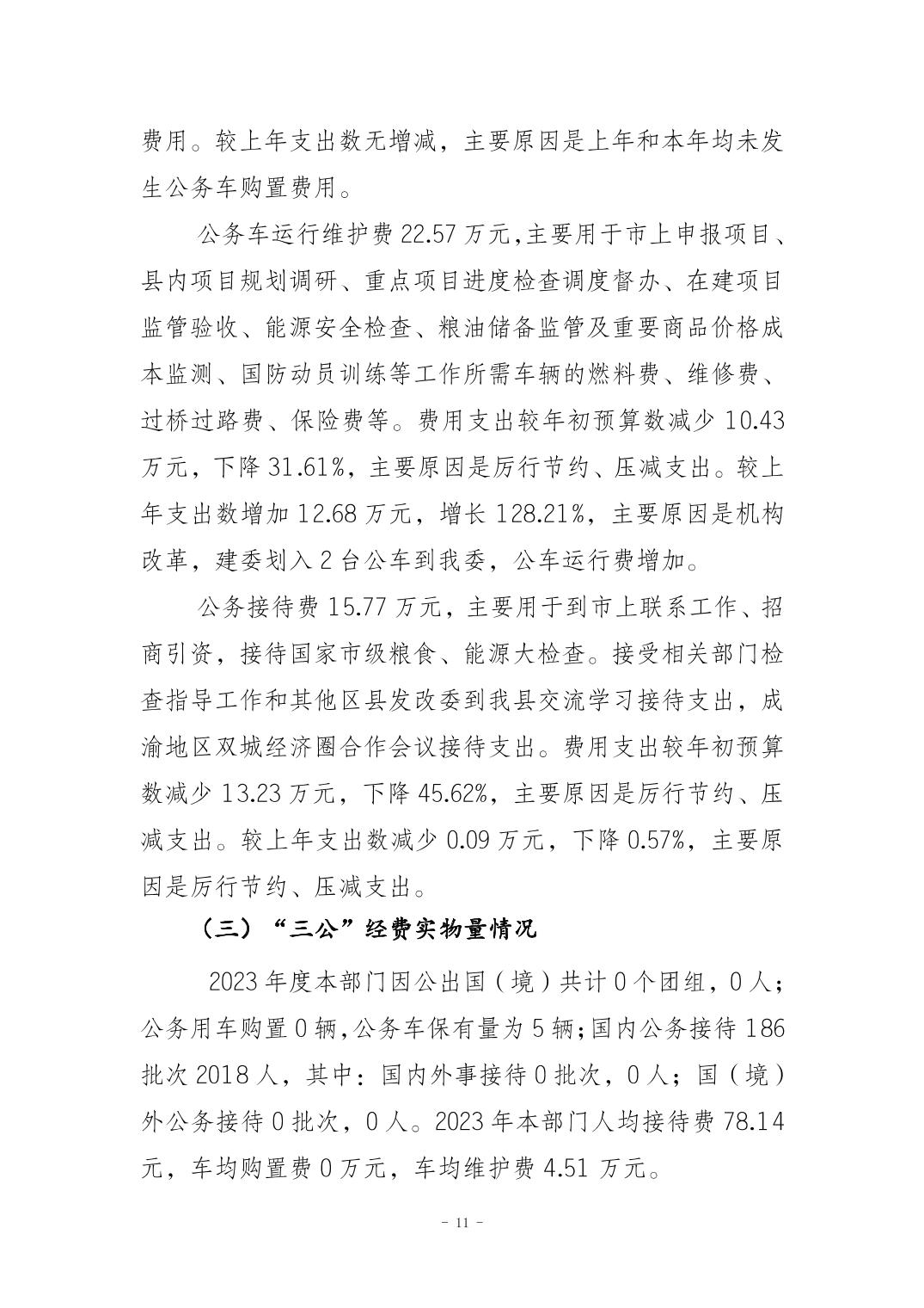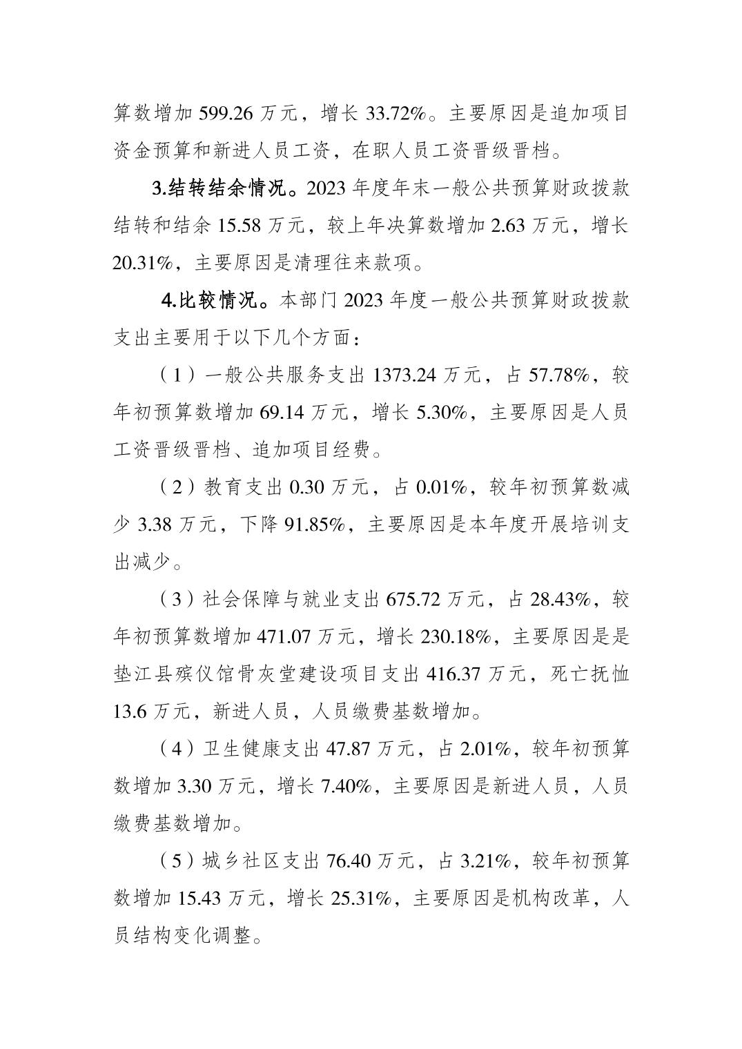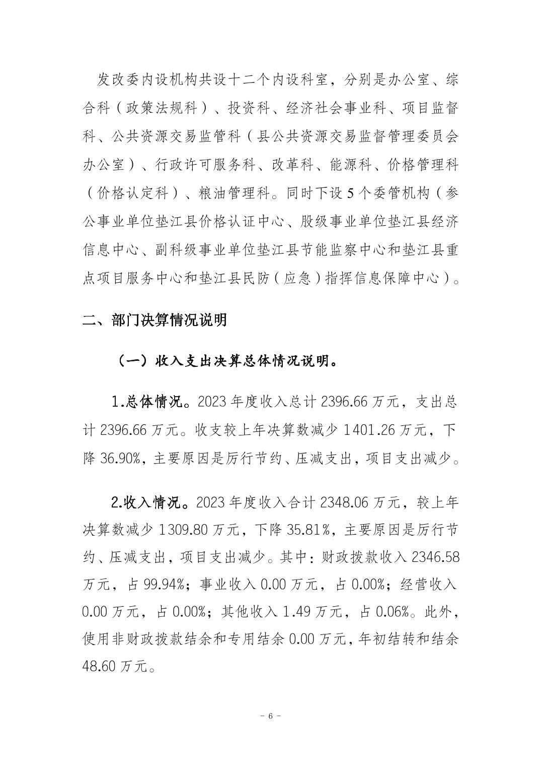 重庆市垫江县发展和改革委员会2023年度决算公开说明