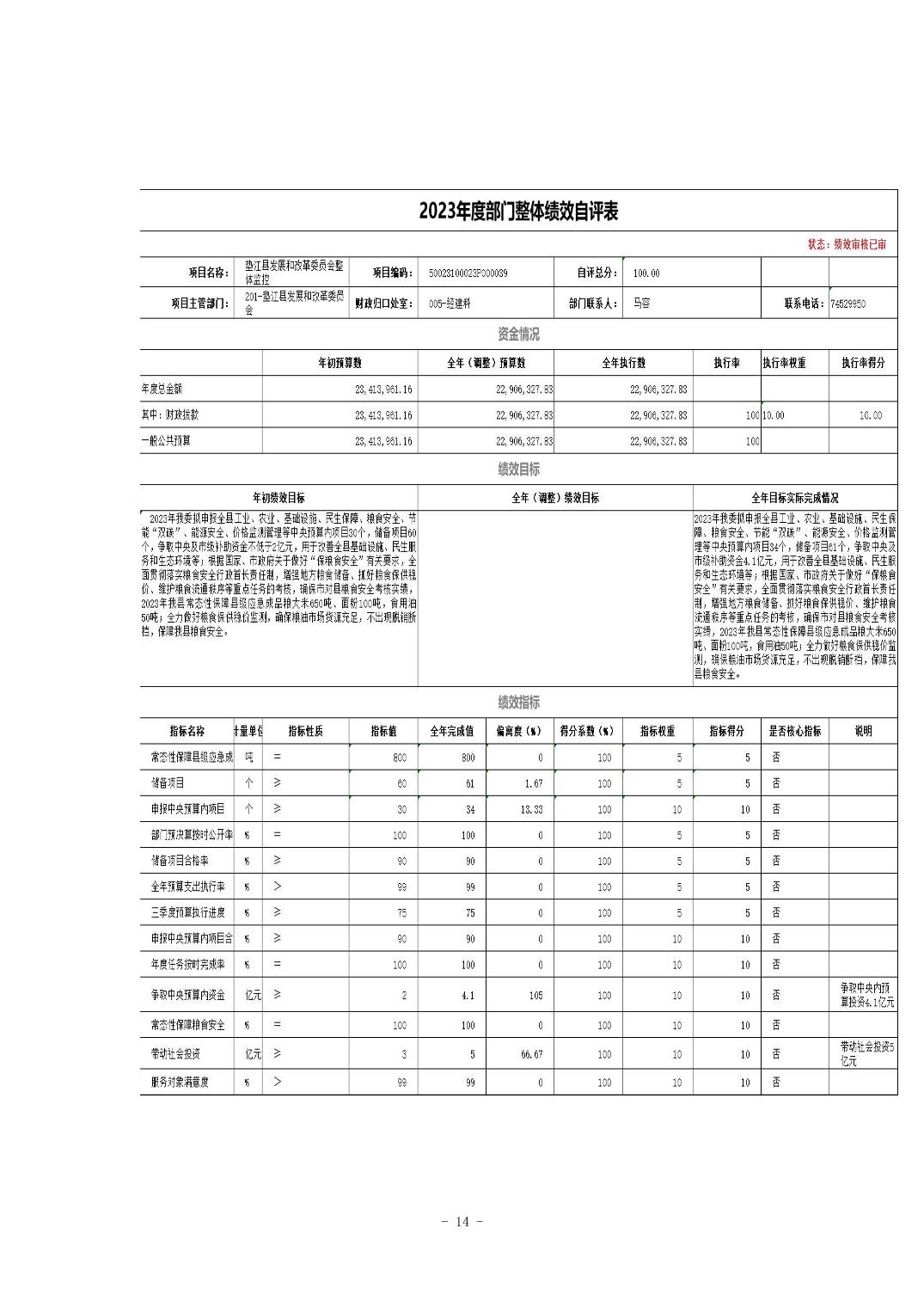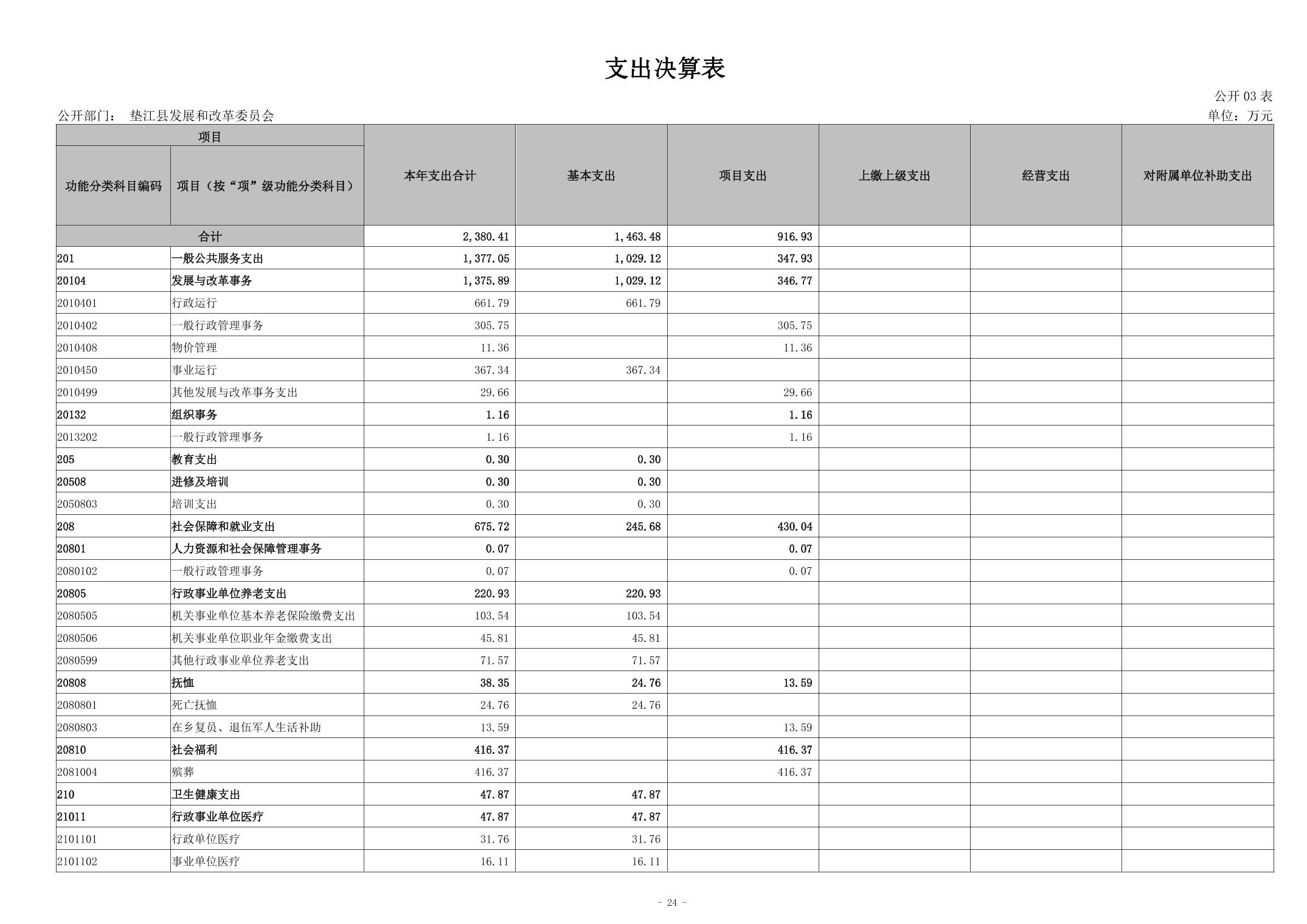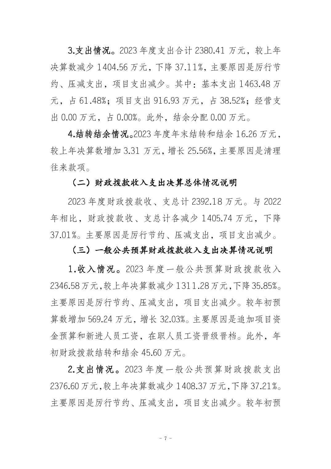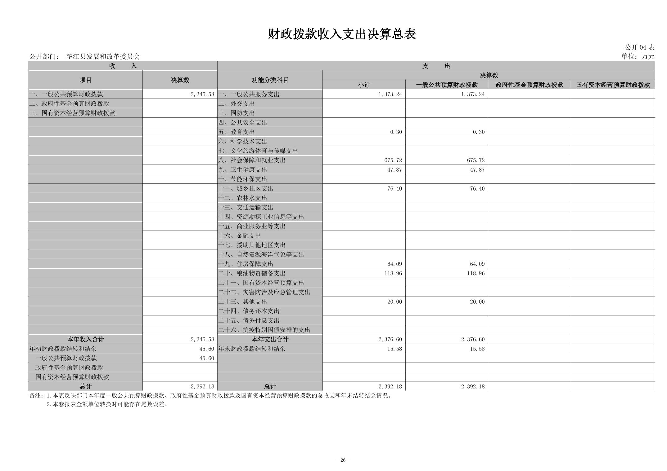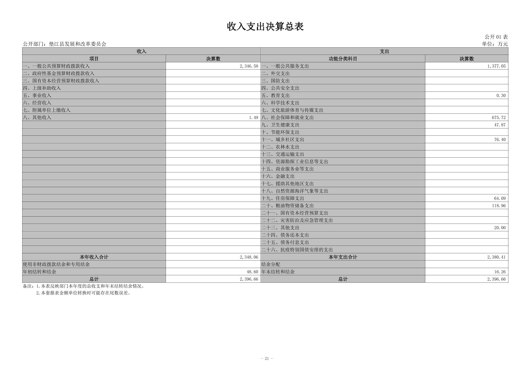 重庆市垫江县发展和改革委员会2023年度决算公开说明
