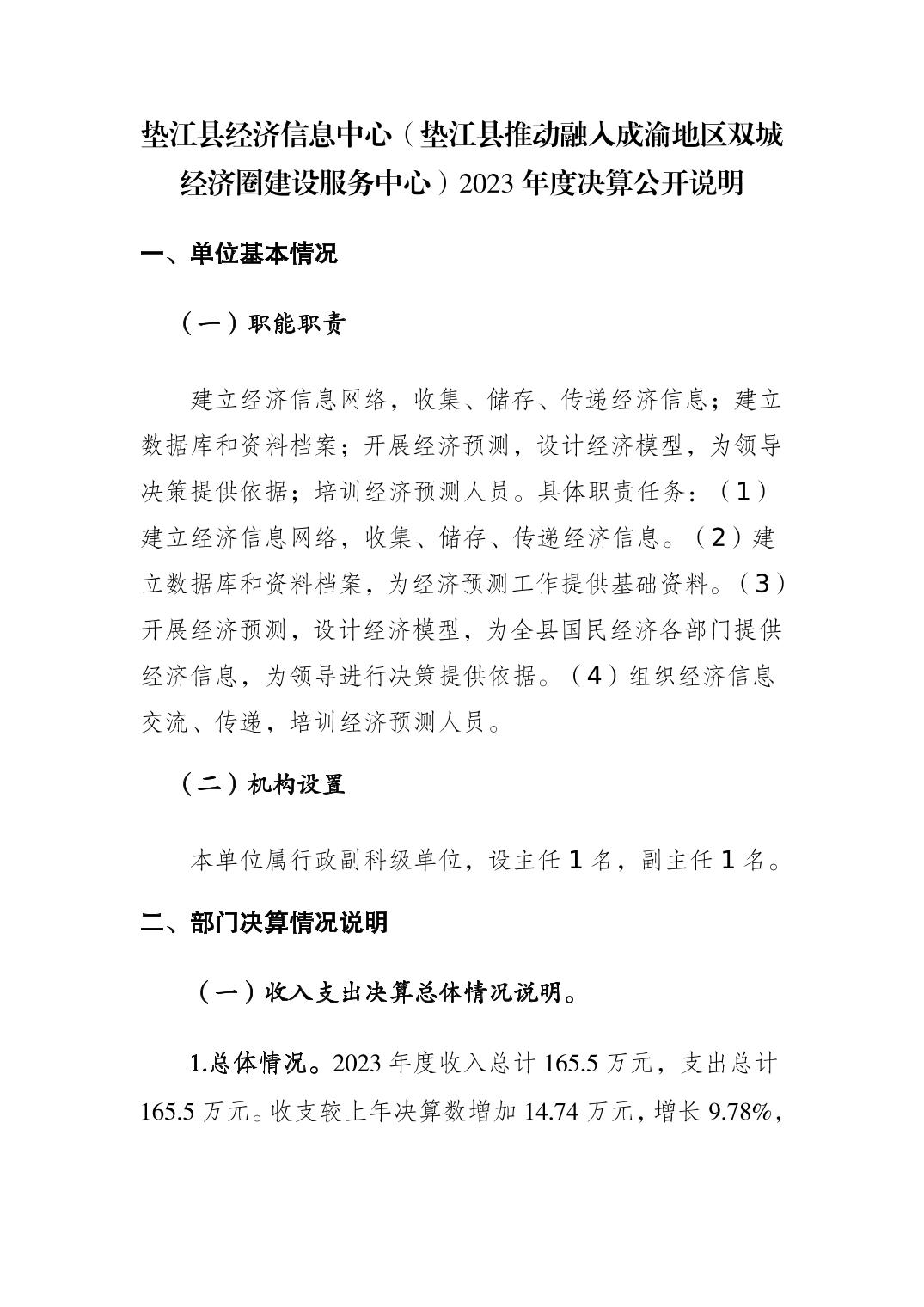 垫江县经济信息中心(垫江县推动融入成渝地区双城经济圈建设服务中心)2023年度决算公开说明.docx垫江县经济信息中心(垫江县推动融入成渝地区双城经济圈建设服务中心)2023年度决算公开说明.pdf