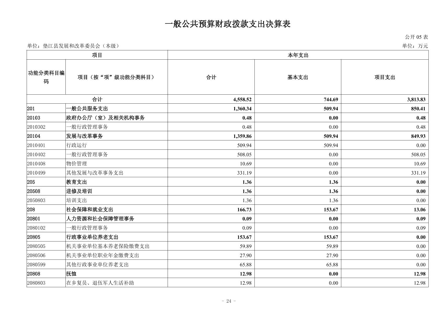 重庆市垫江县发展和改革委员会(本级)2024年度决算情况说明