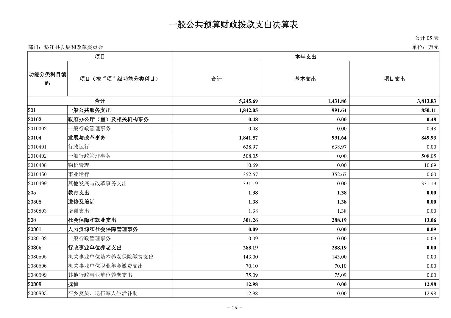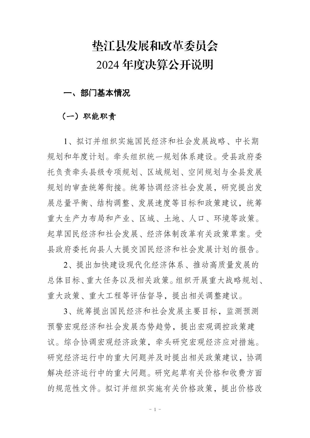 重庆市垫江县发展和改革委员会2024年度决算情况说明