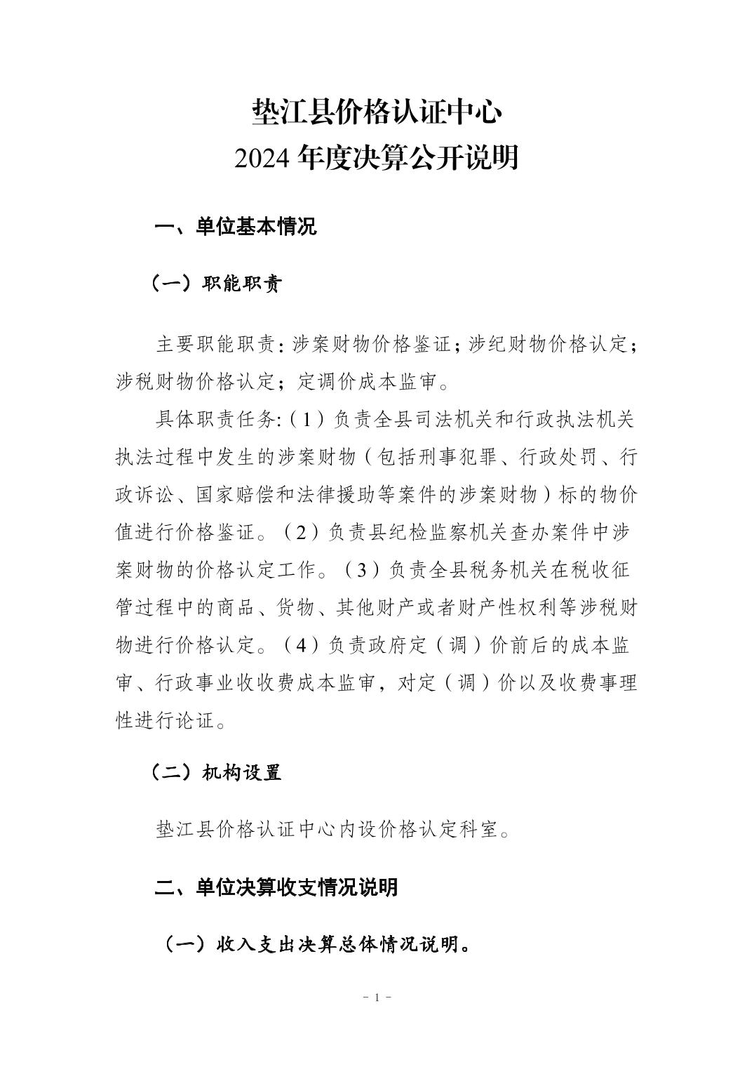重庆市垫江县价格认证中心2024年度决算情况说明