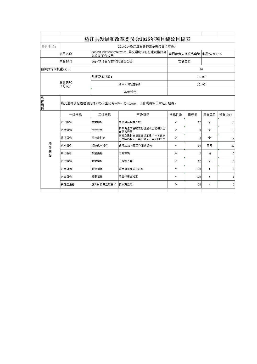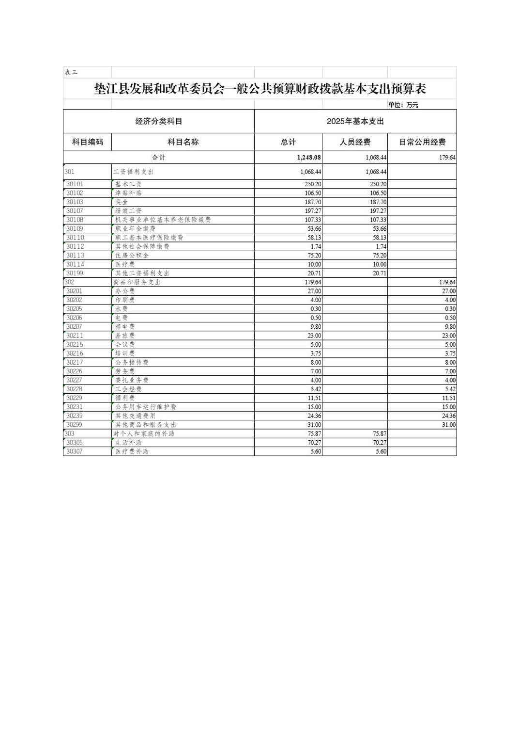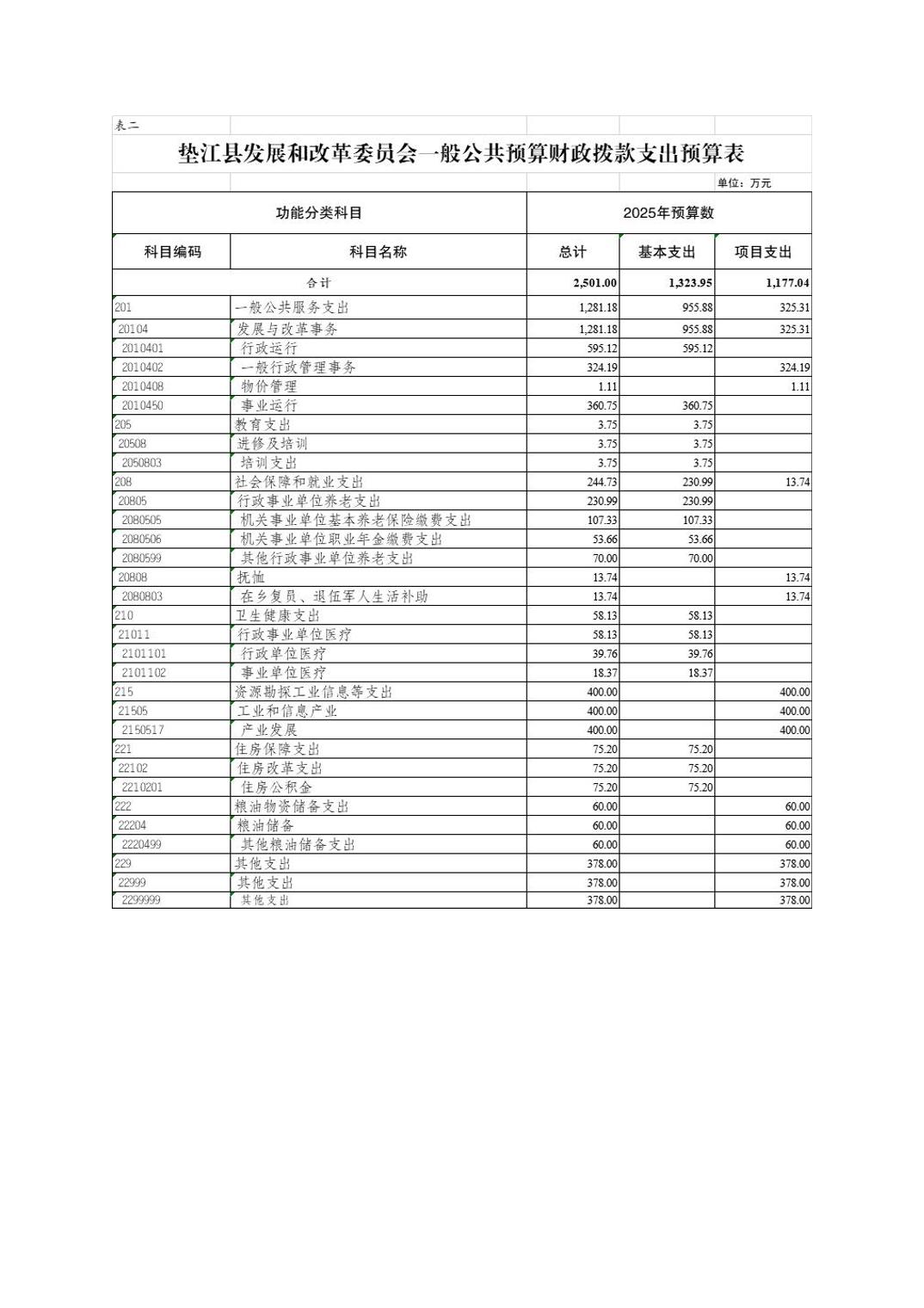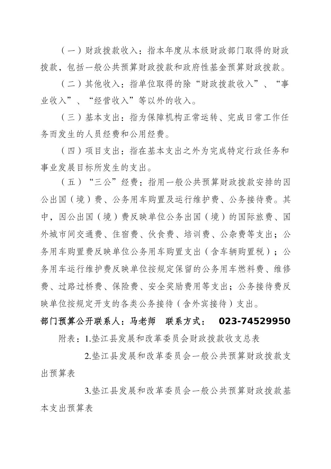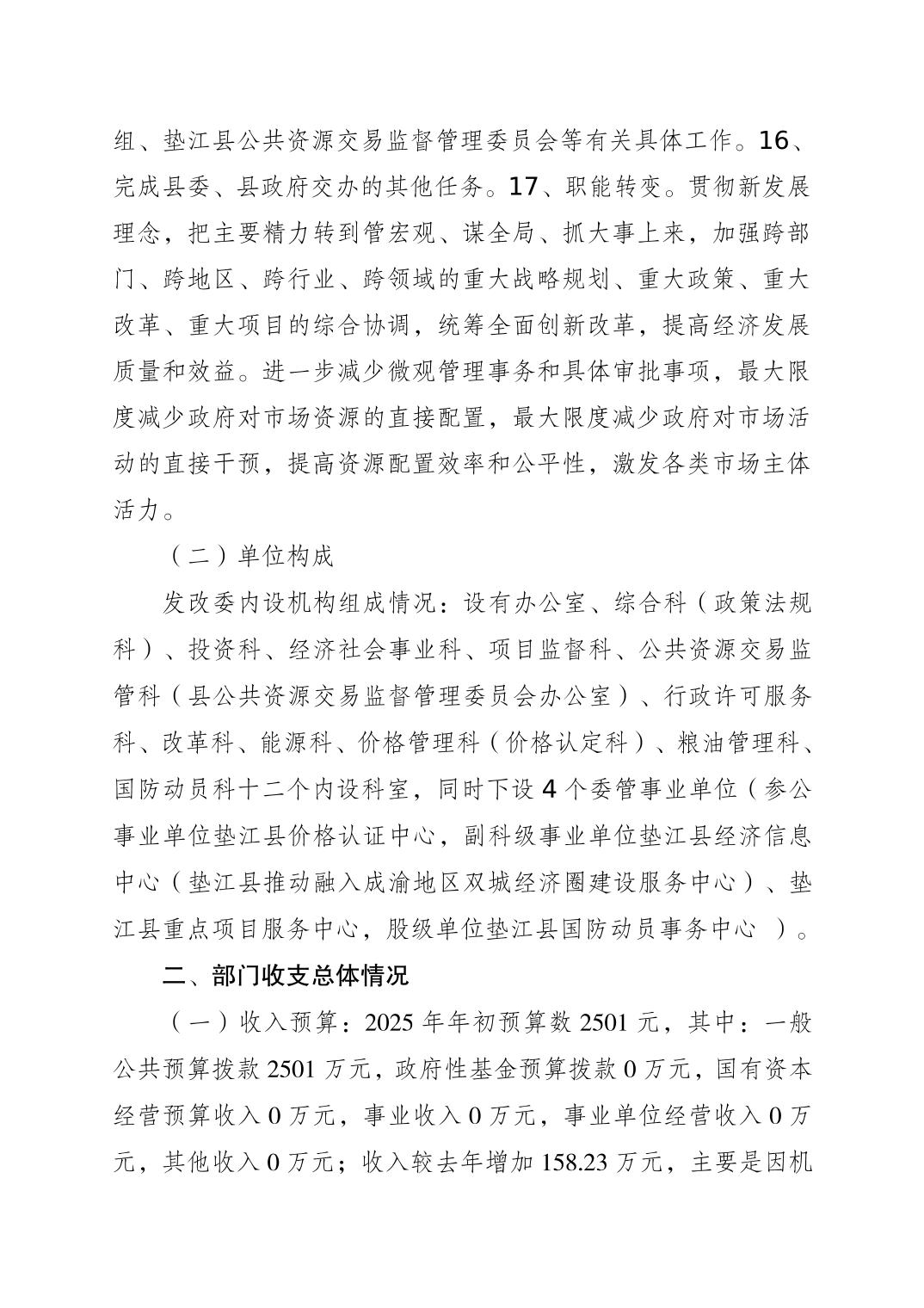 重庆市垫江县发展和改革委员会2025年部门预算情况说明