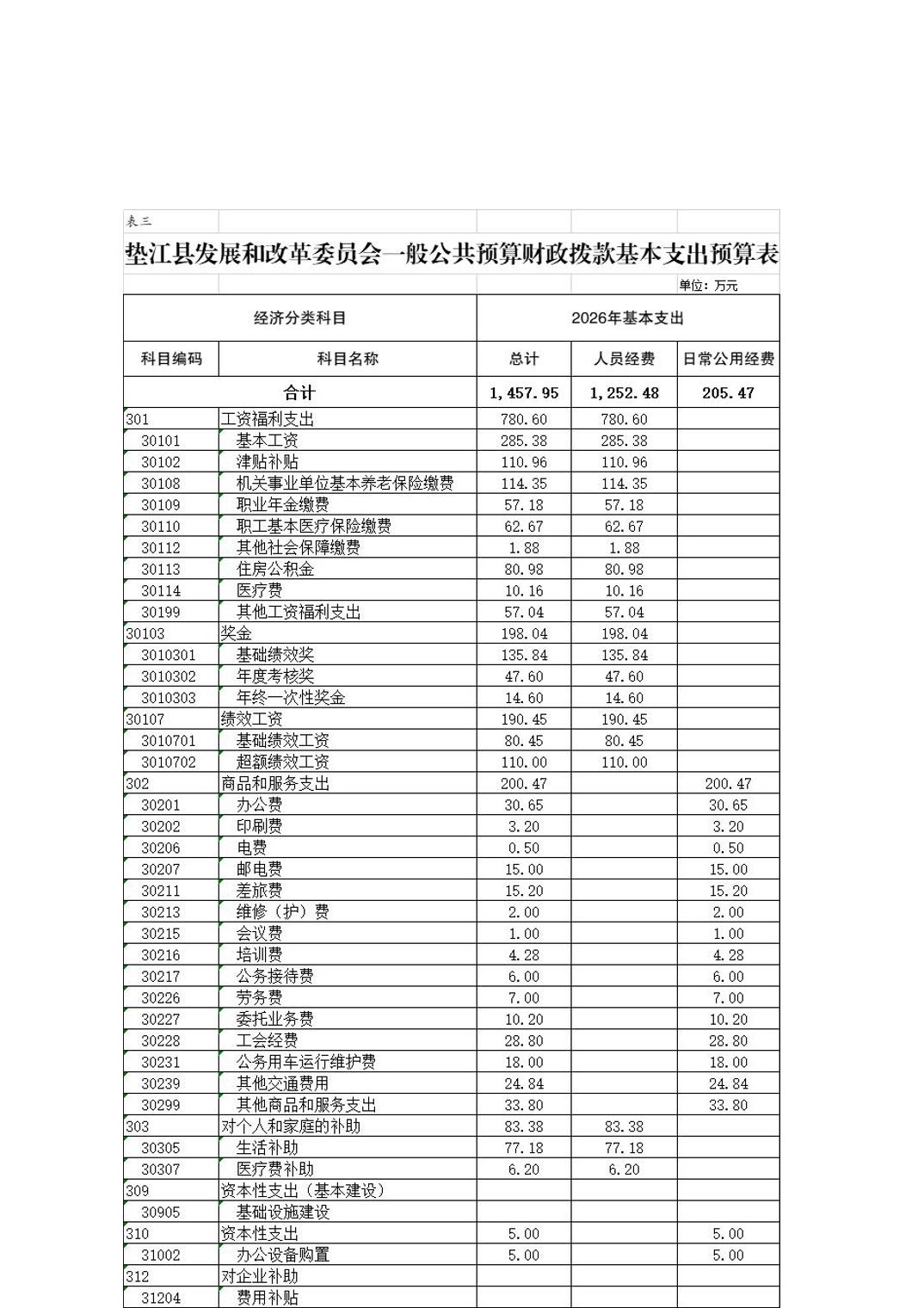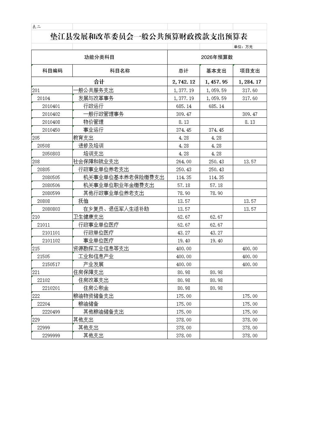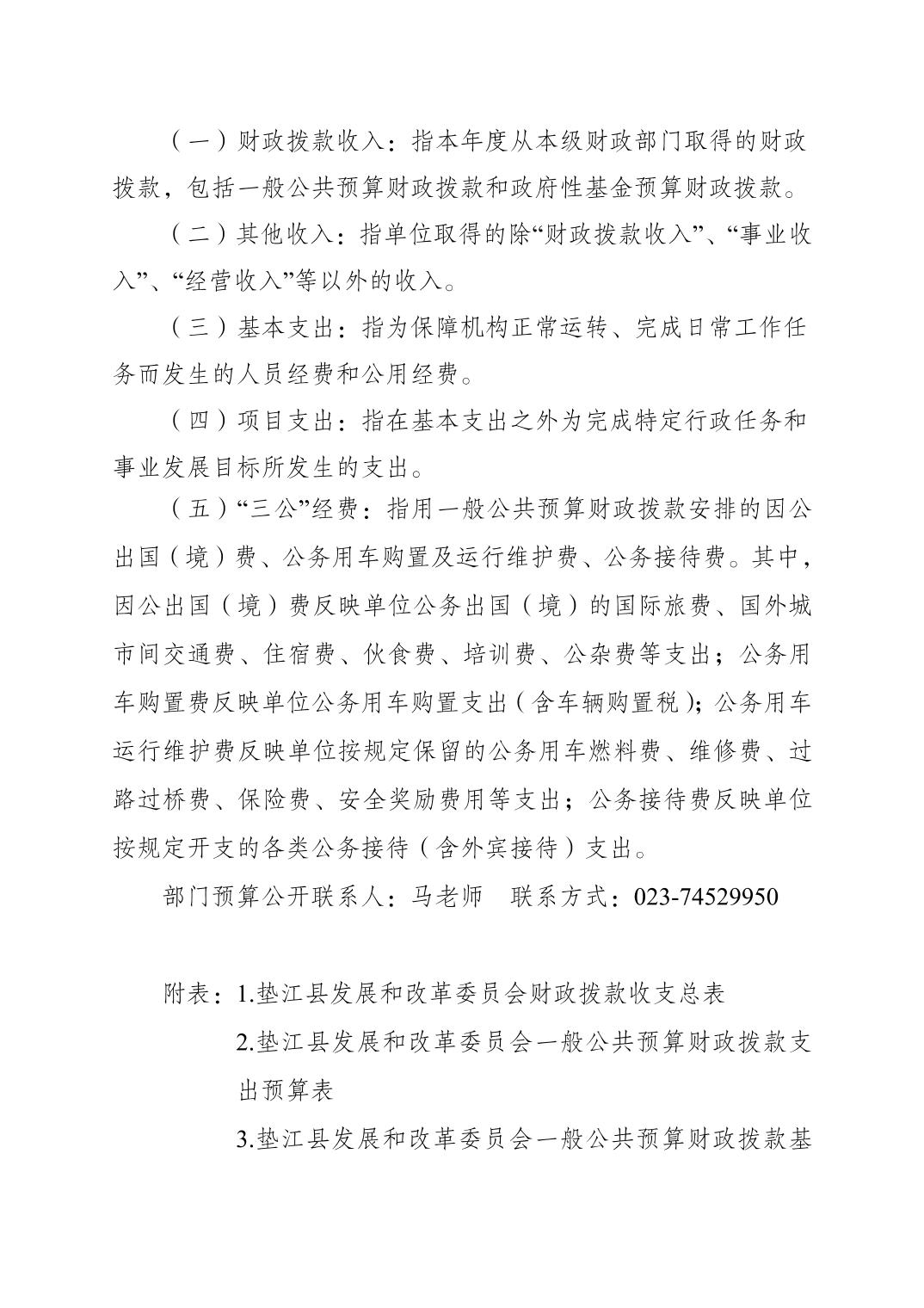 重庆市垫江县发展和改革委员会2026年部门预算情况说明