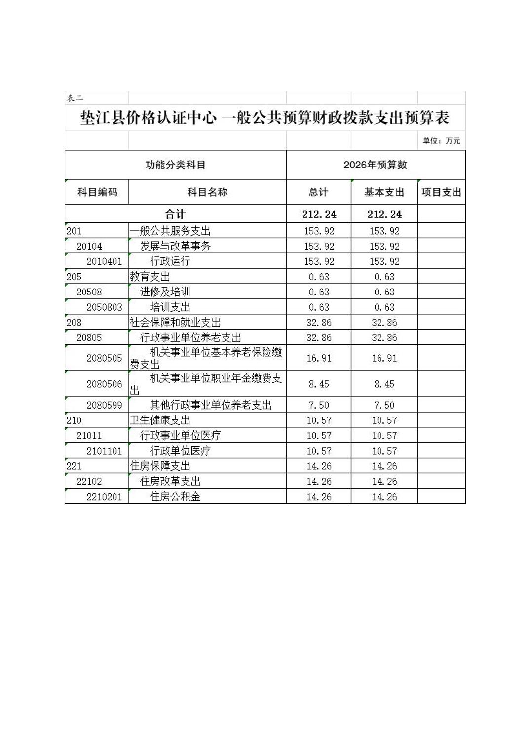 重庆市垫江县价格认证中心2026年单位预算情况说明