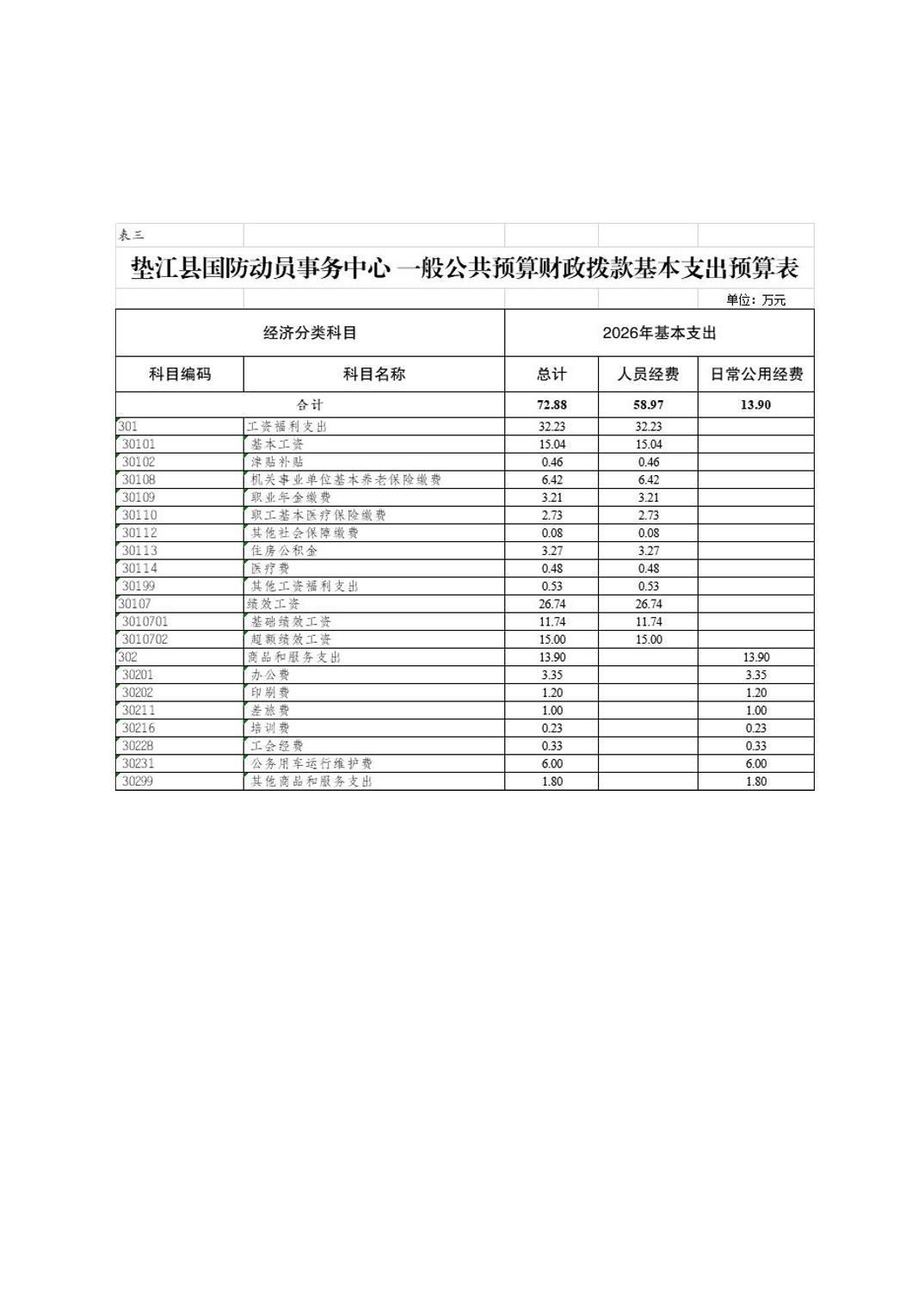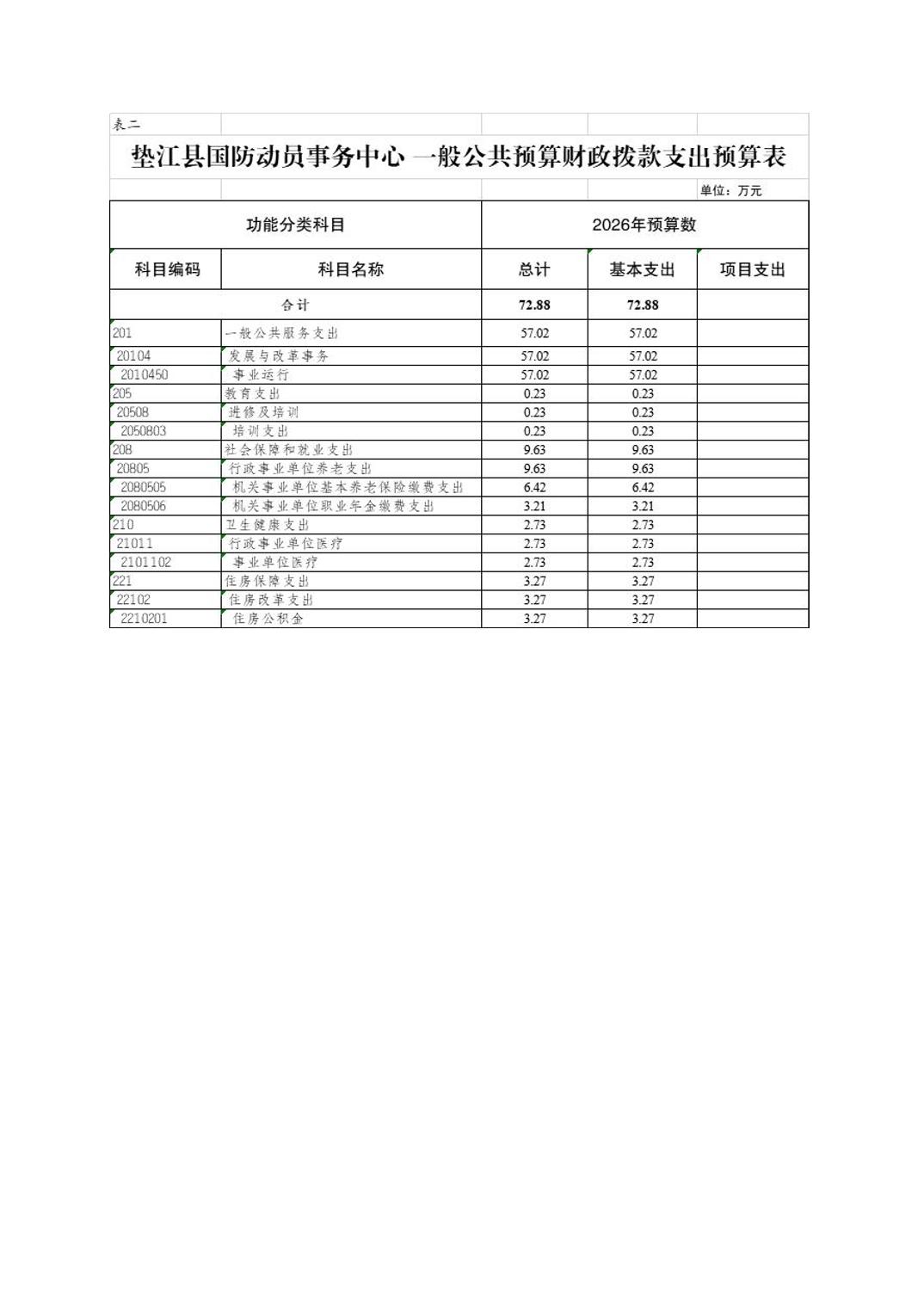 重庆市垫江县垫江县国防动员事务中心2026年单位预算情况说明