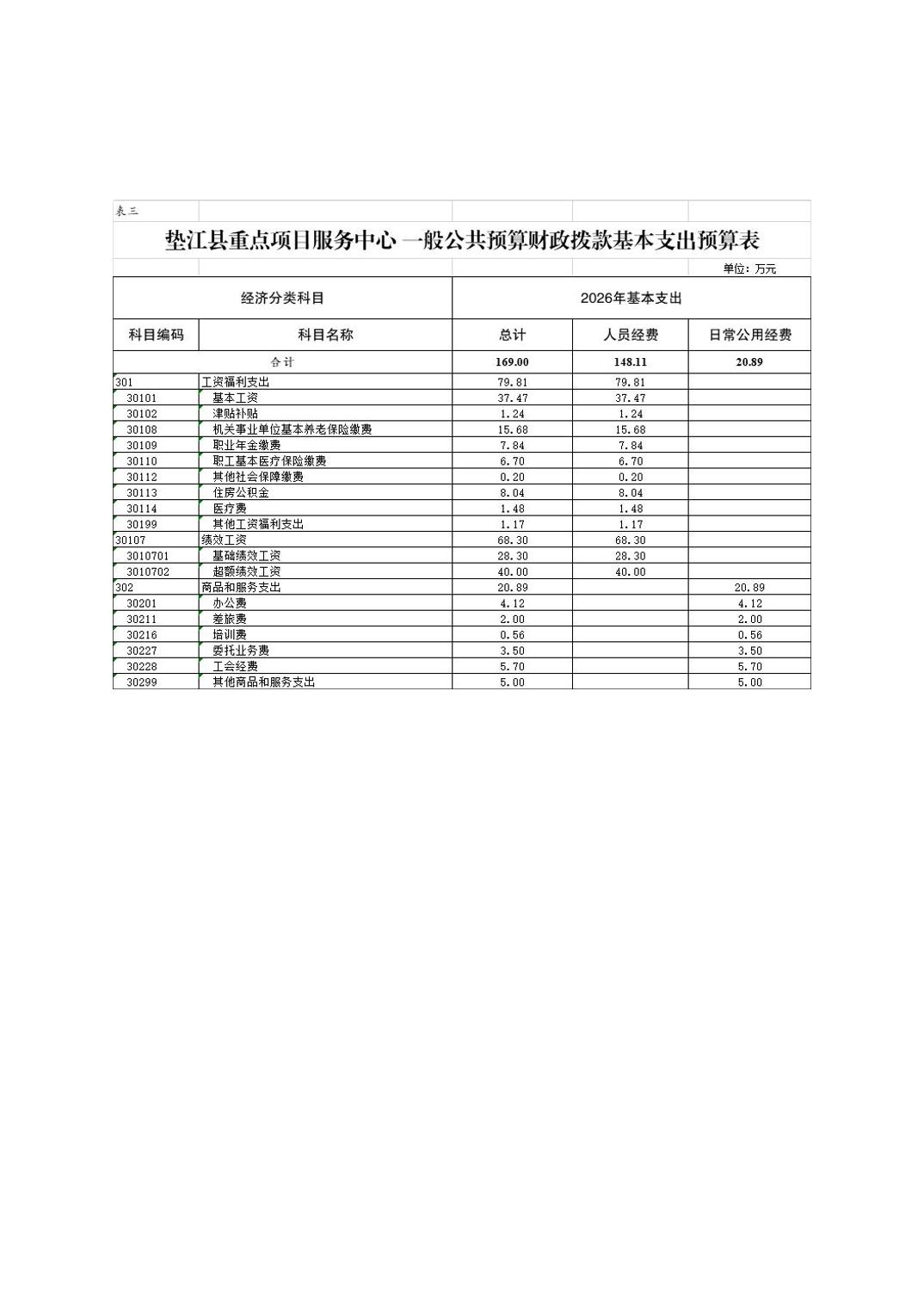 重庆市垫江县重点项目服务中心2026年单位预算情况说明
