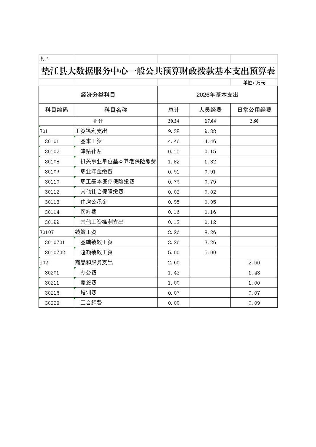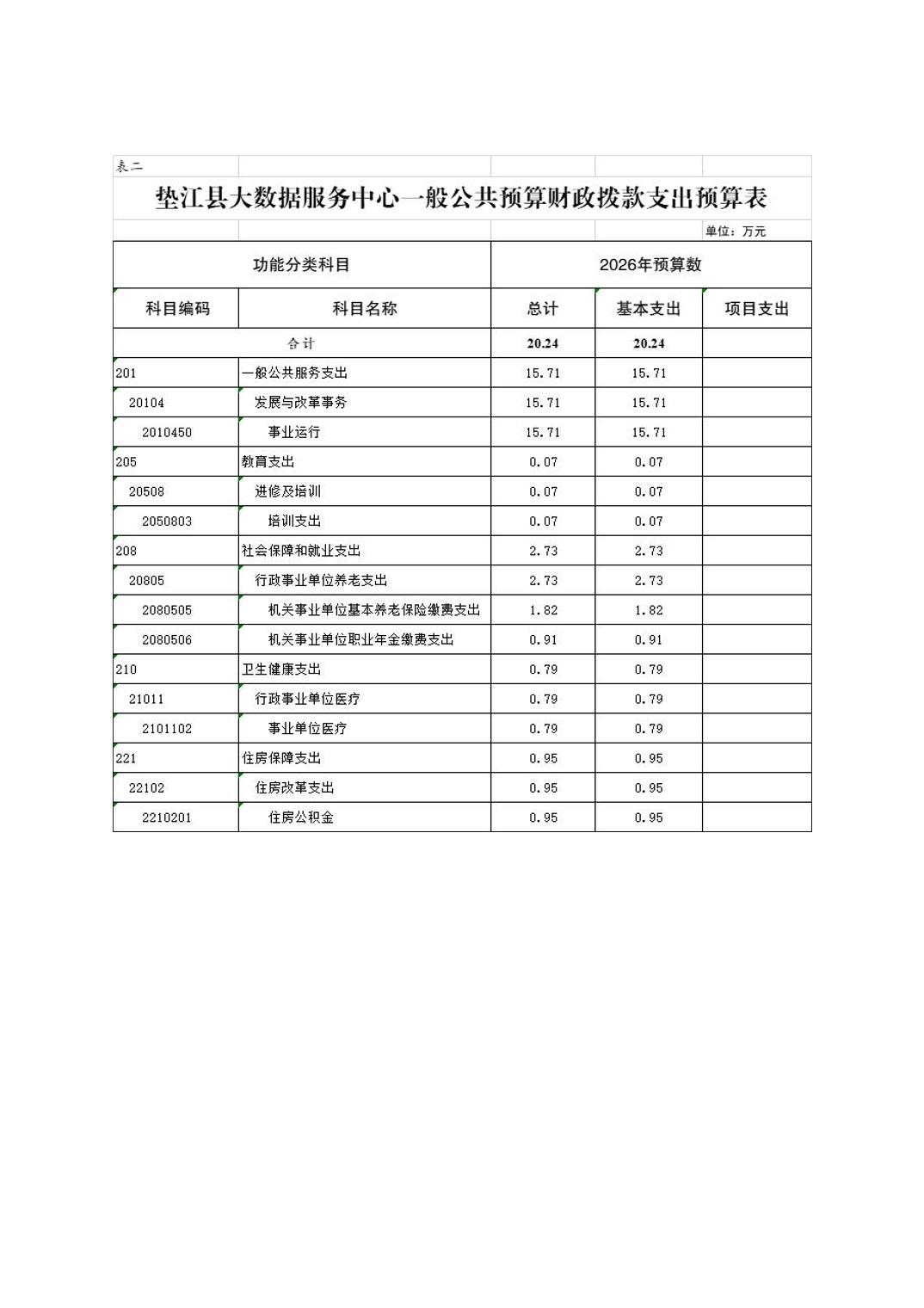 重庆市垫江县大数据服务中心2026年单位预算情况说明