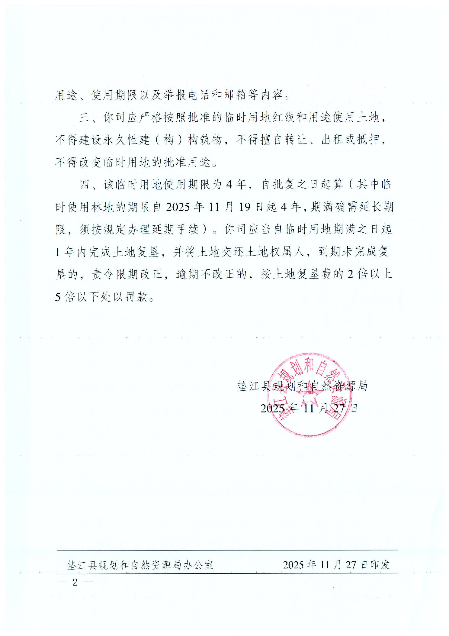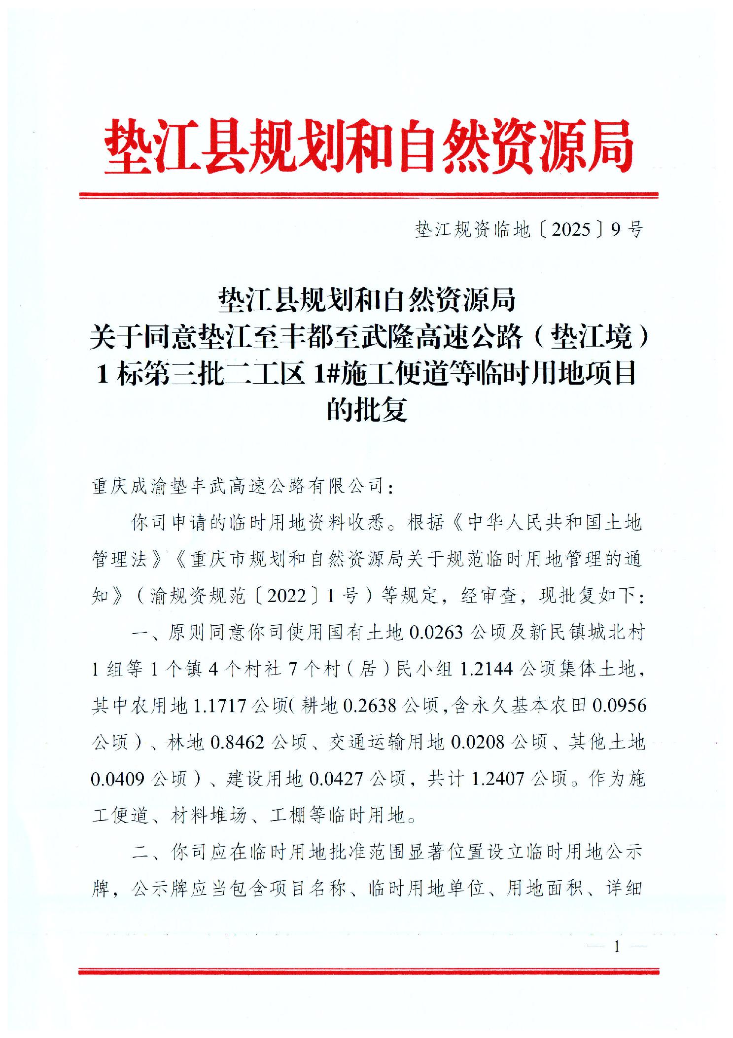 垫江至丰都至武隆高速公路(垫江境)1标第三批二工区1#施工便道等临时用地项目的批复