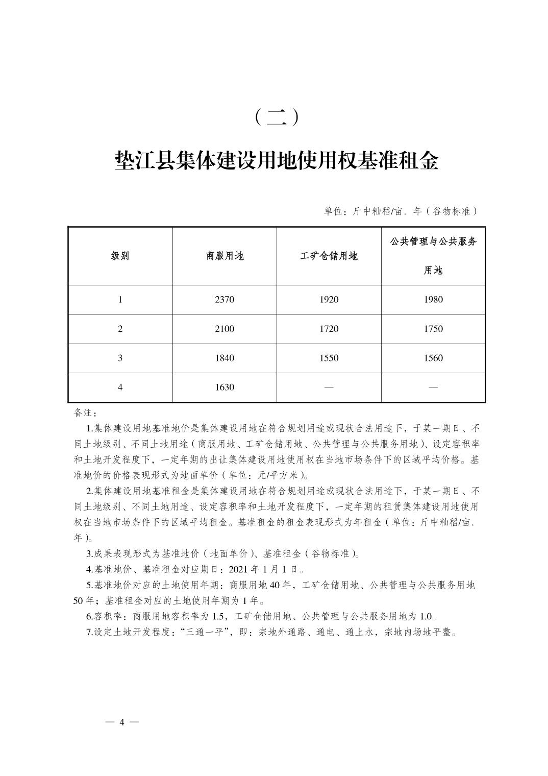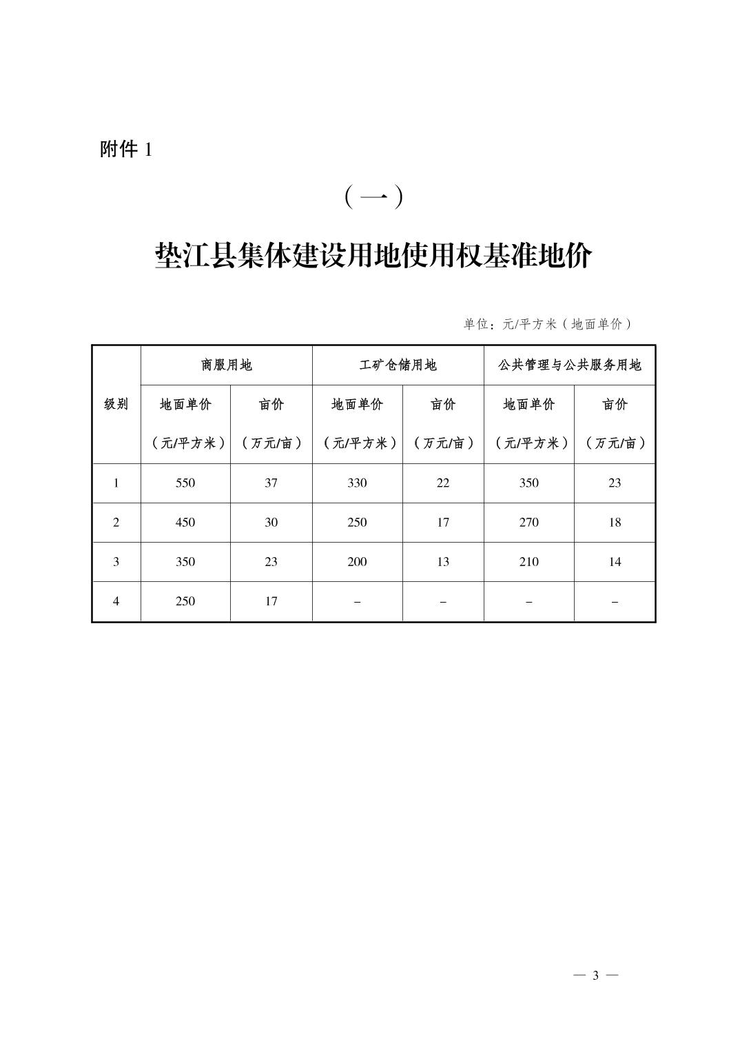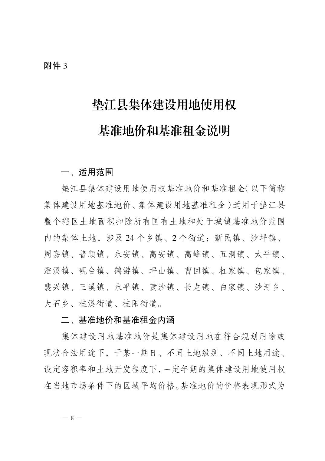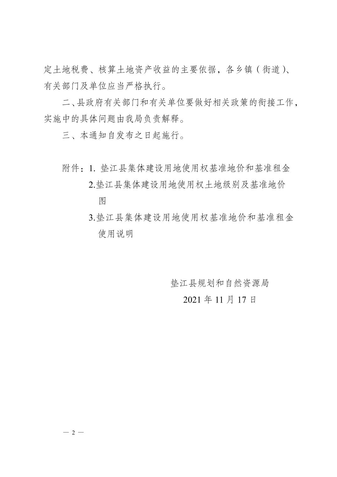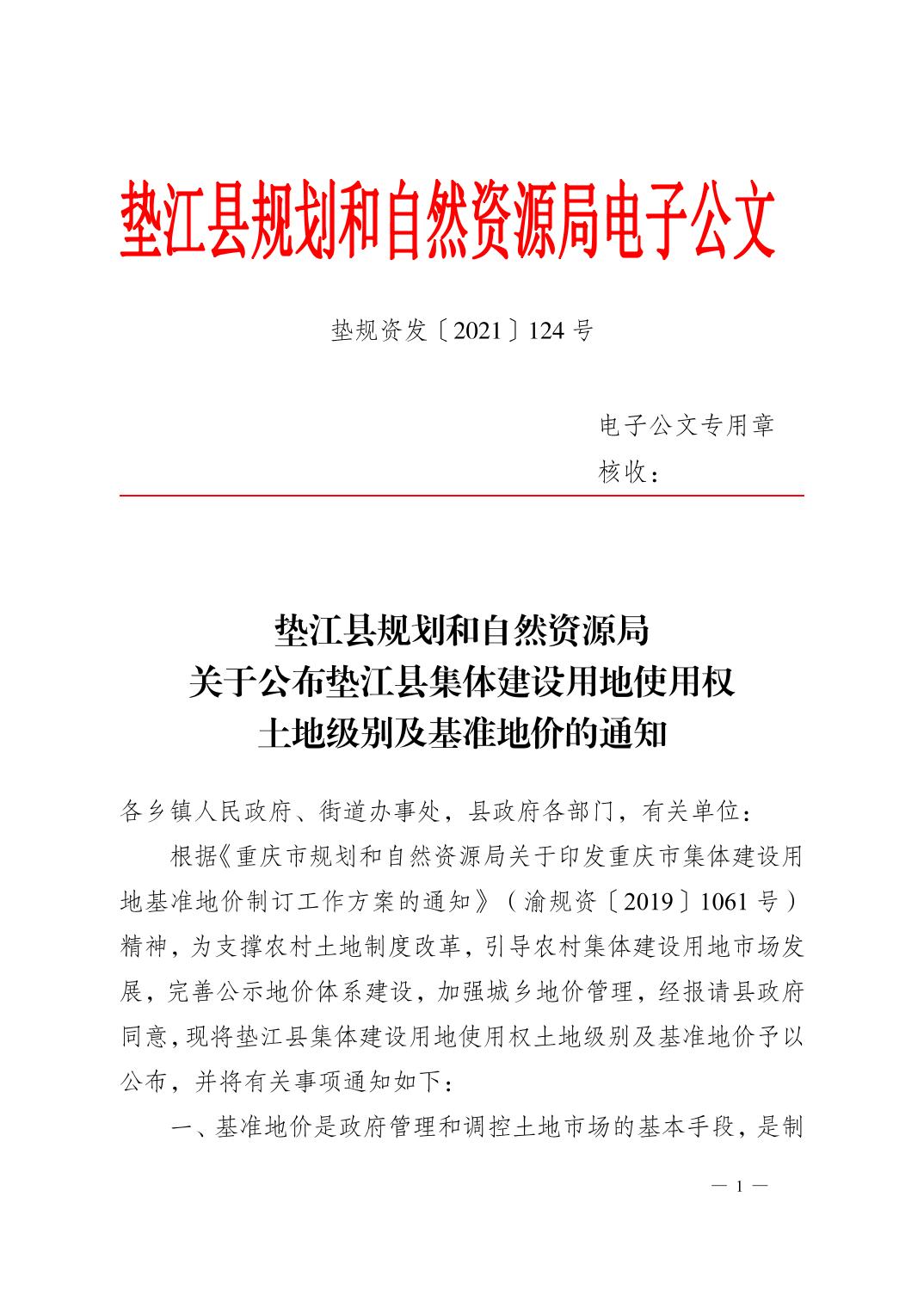 垫江县规划和自然资源局关于公布垫江县集体建设用地使用权土地级别及基准地价的通知