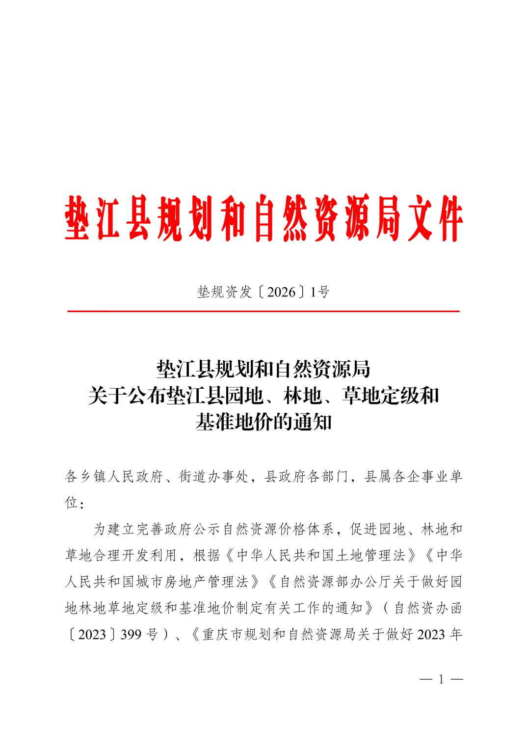 1关于公布垫江县园地、林地、草地定级和基准地价的通知.docx