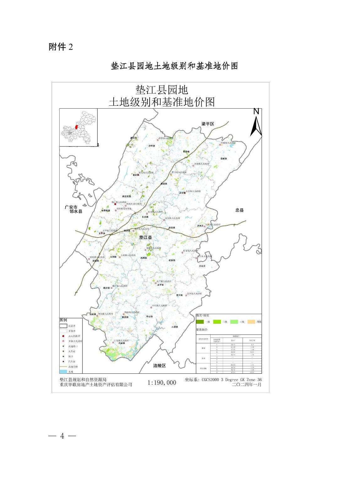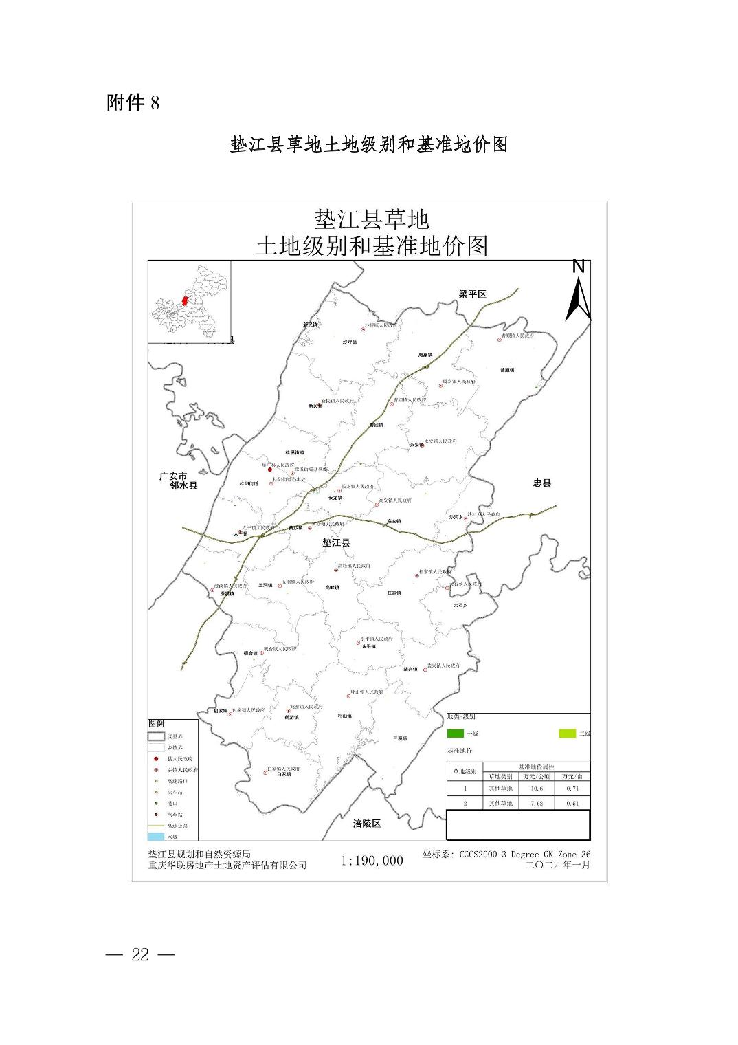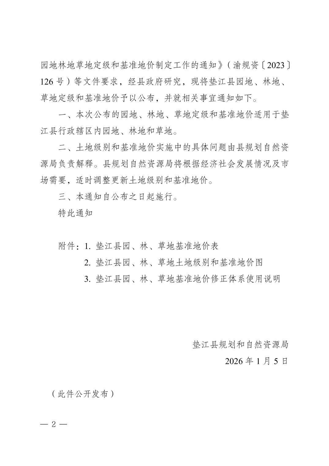 关于公布垫江县园地、林地、草地定级和基准地价的通知