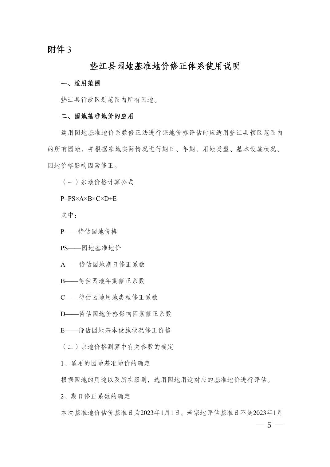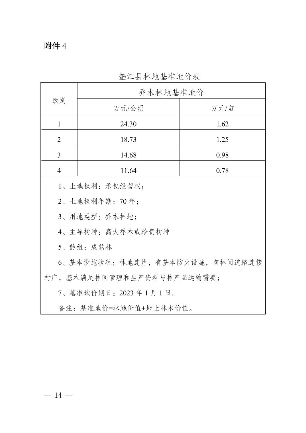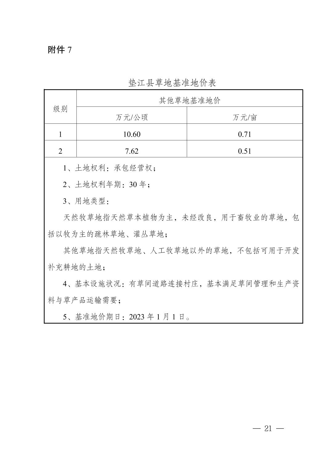 关于公布垫江县园地、林地、草地定级和基准地价的通知