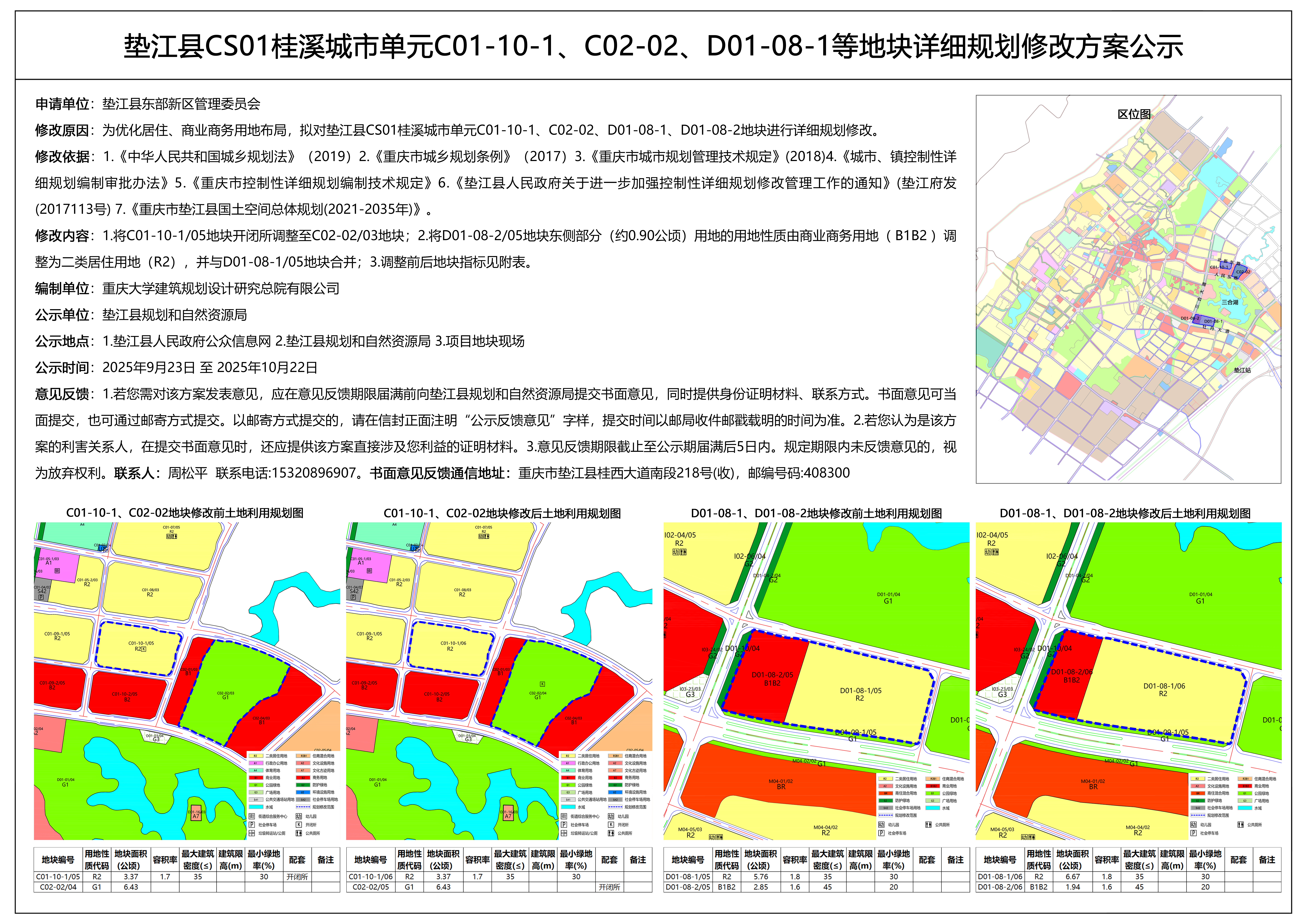垫江县CS01桂溪城市单元C01-10-1、C02-02、D01-08-1等地块详细规划修改方案公示