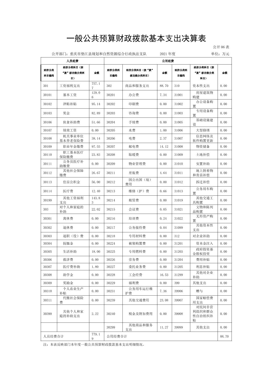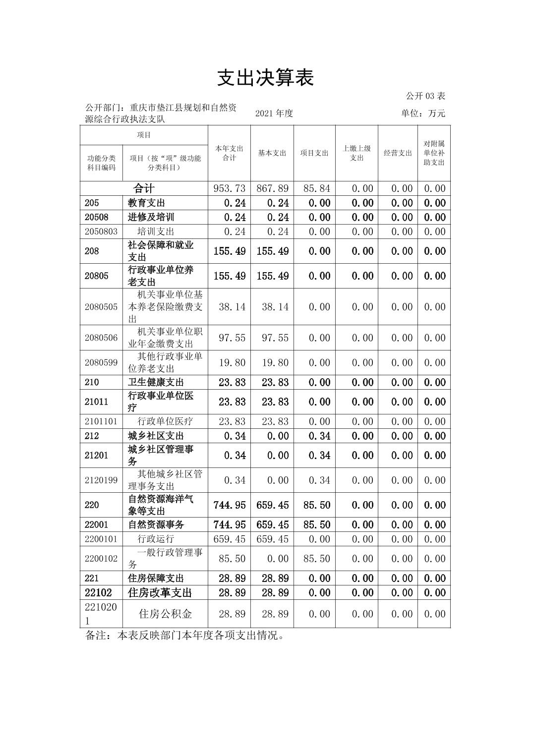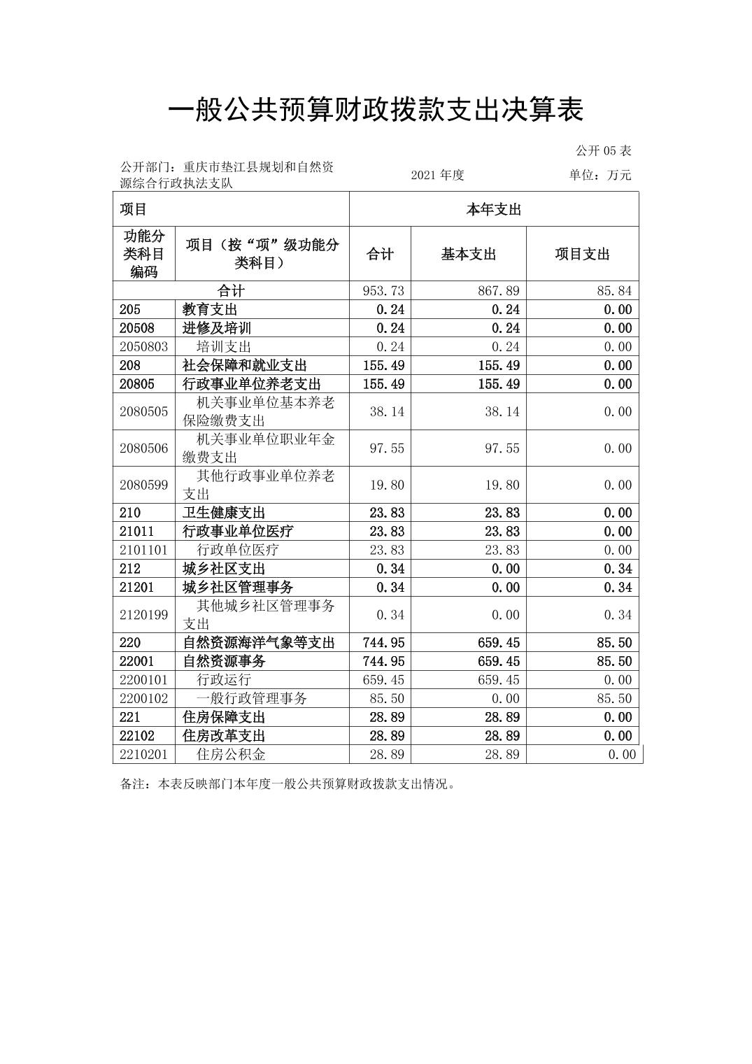 重庆市垫江县规划和自然资源综合行政执法支队2021年决算公开.pdf