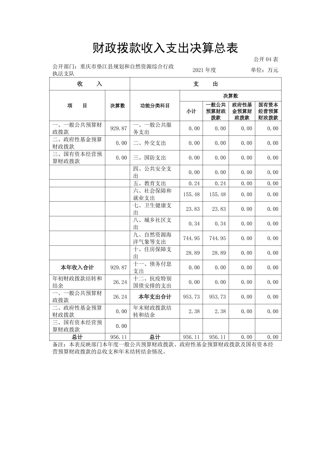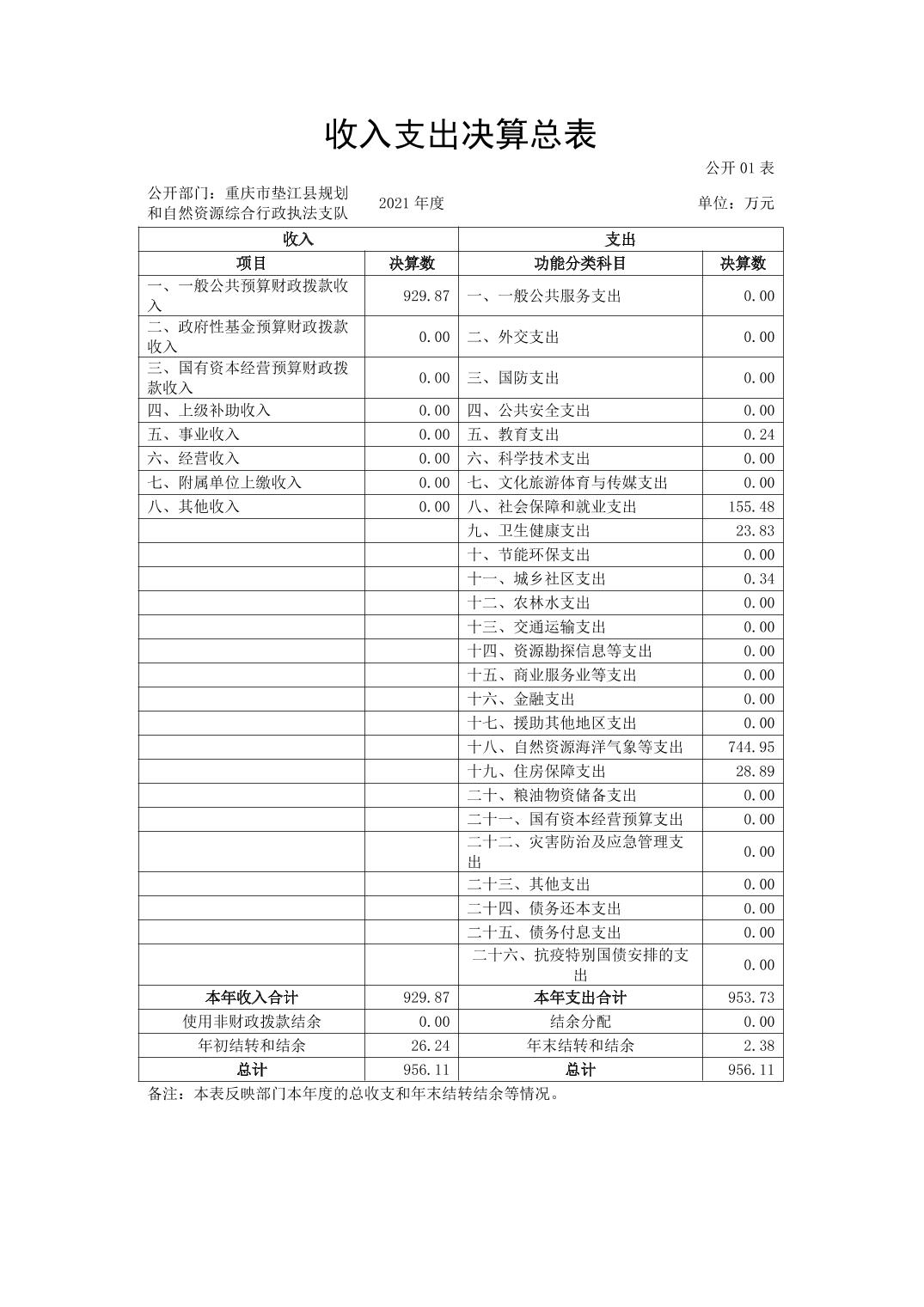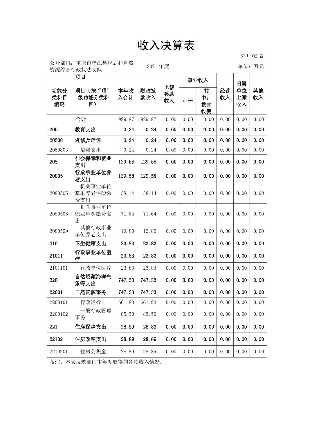 重庆市垫江县规划和自然资源综合行政执法支队2021年决算公开.pdf