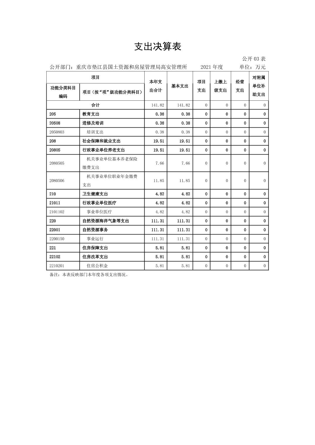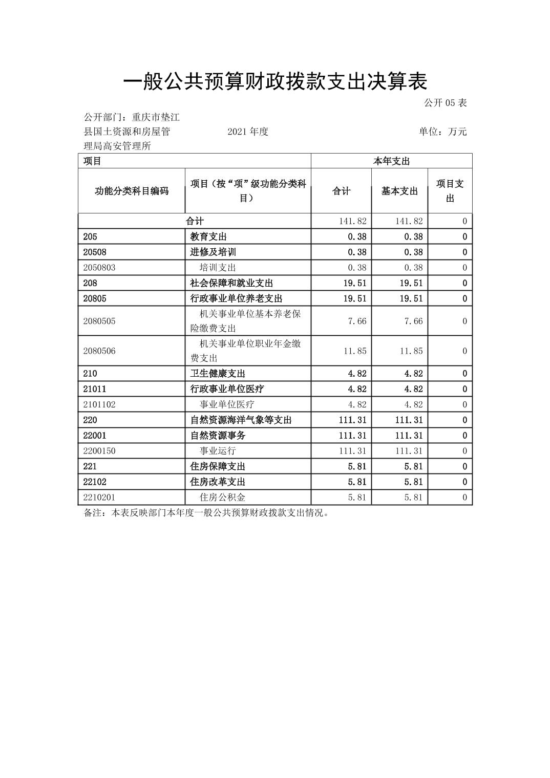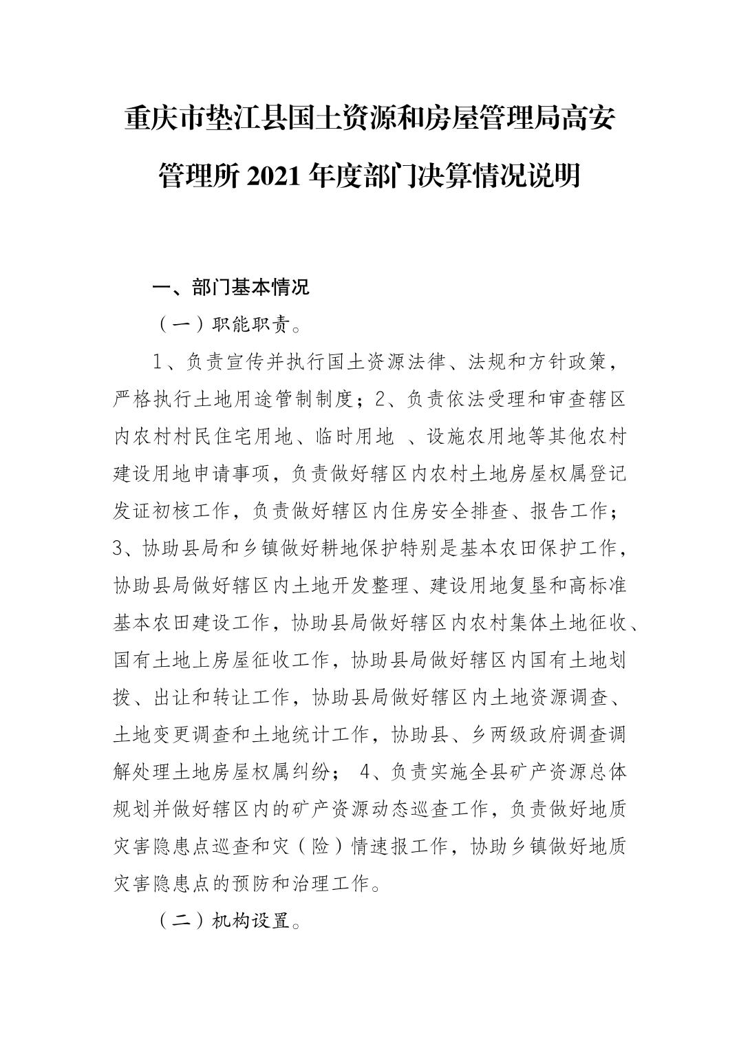 重庆市垫江县国土资源和房屋管理局高安管理所2021年决算公开说明.pdf