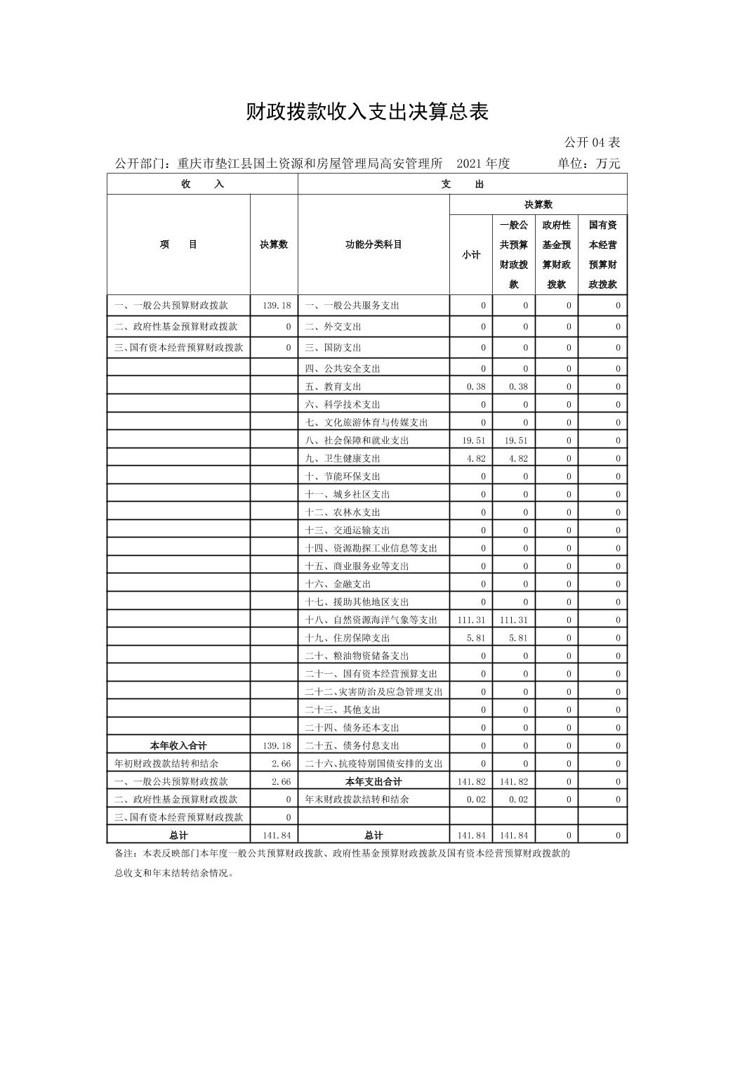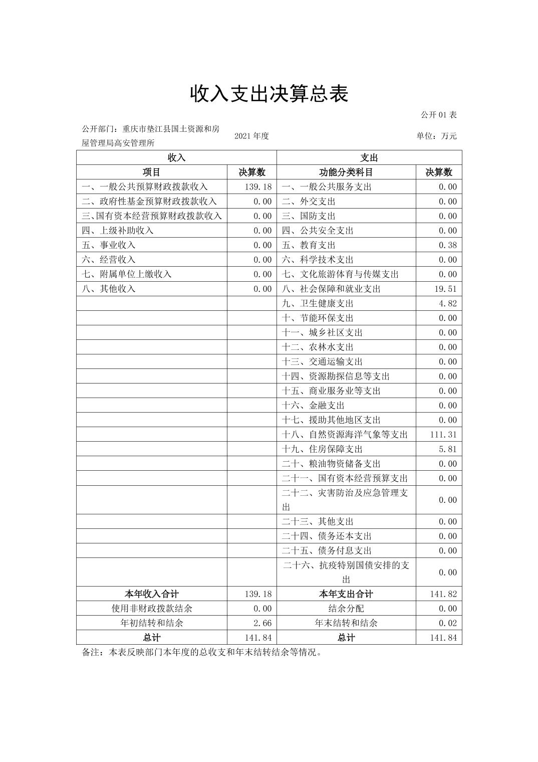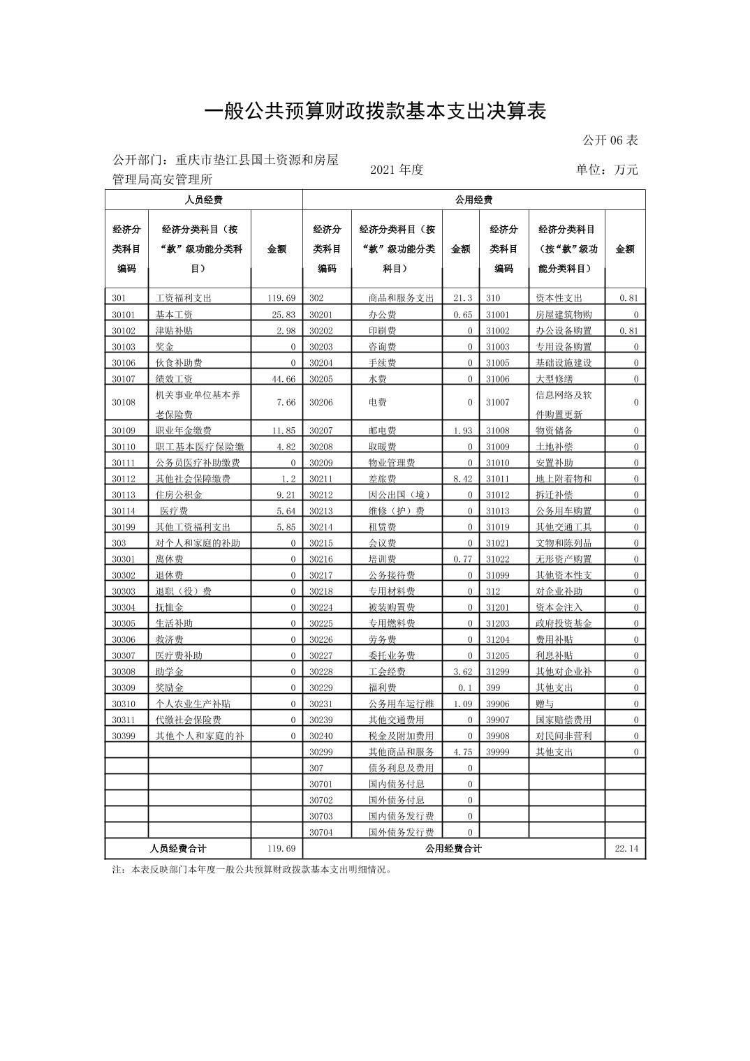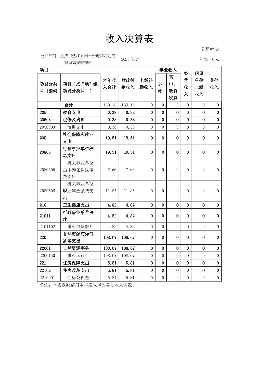 重庆市垫江县国土资源和房屋管理局高安管理所2021年决算公开说明.pdf