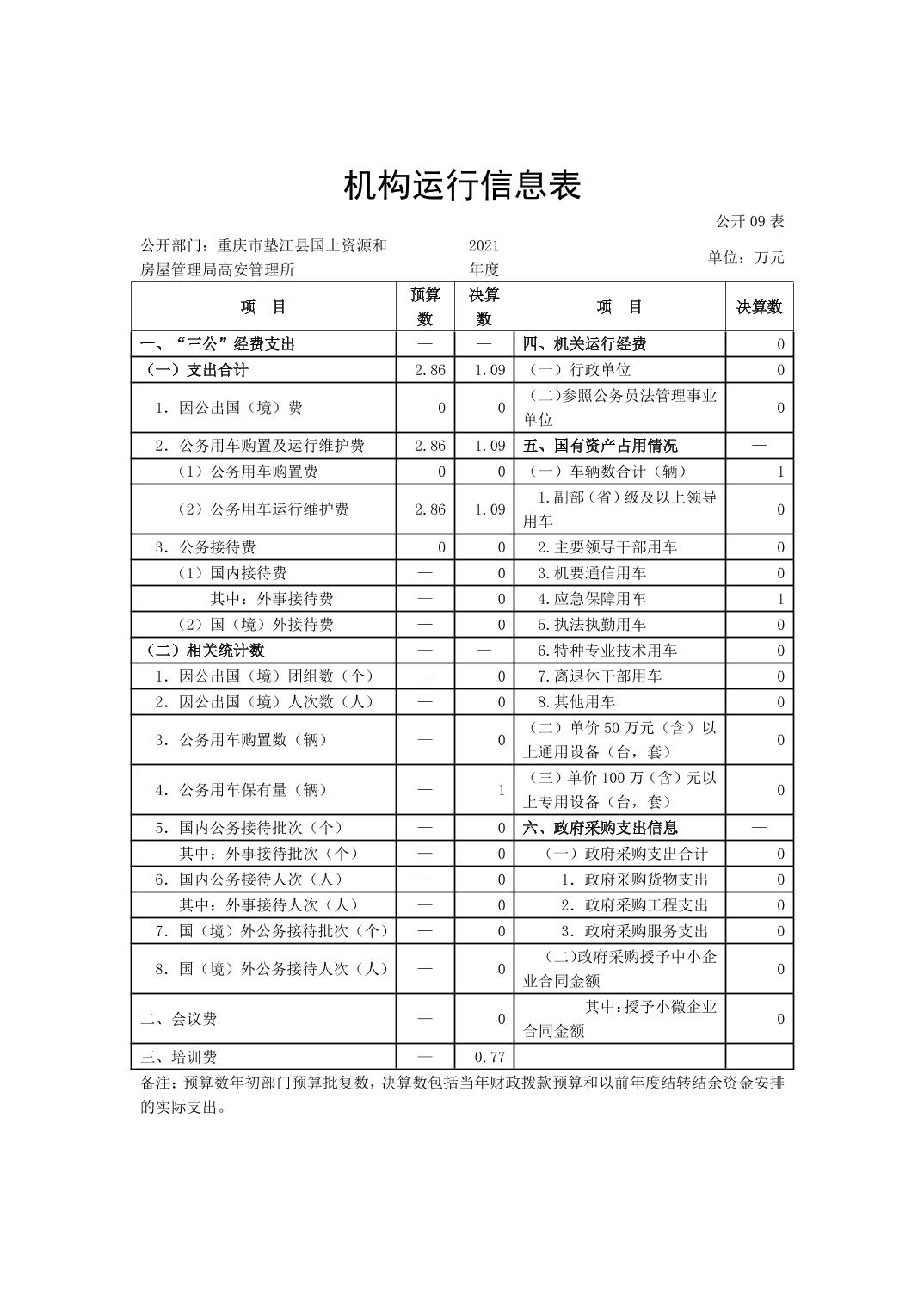 重庆市垫江县国土资源和房屋管理局高安管理所2021年决算公开说明