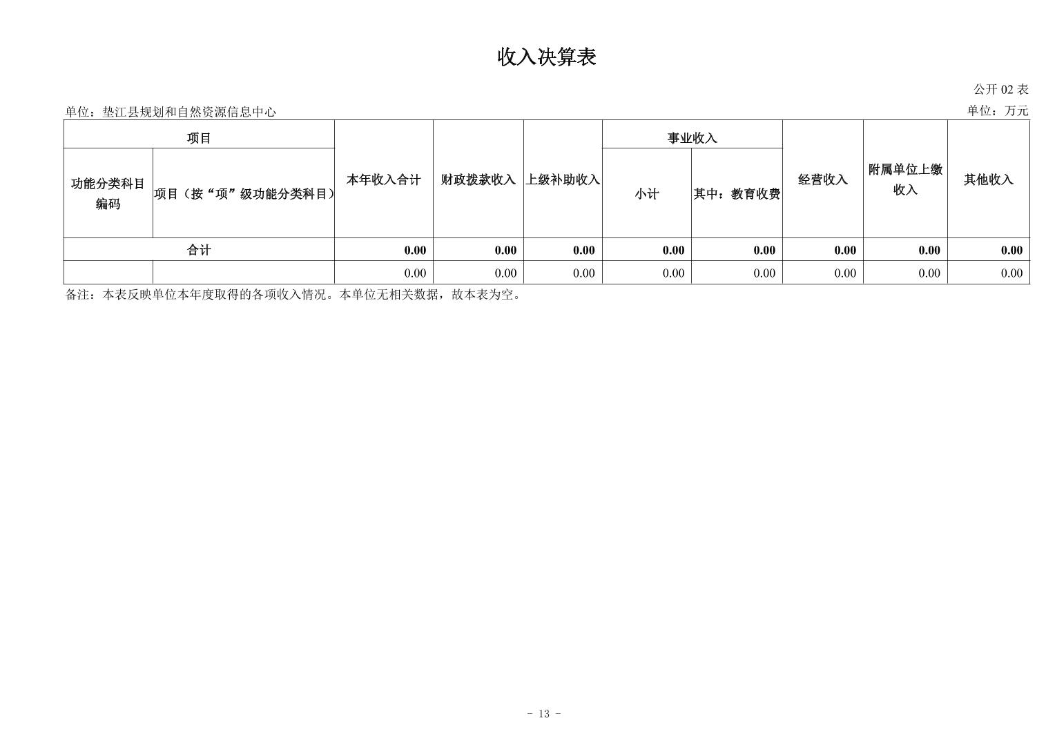 您当前的位置:首页>规划和自然资源局>政务公开>法定主动公开内容>预算/决算>决算公开
