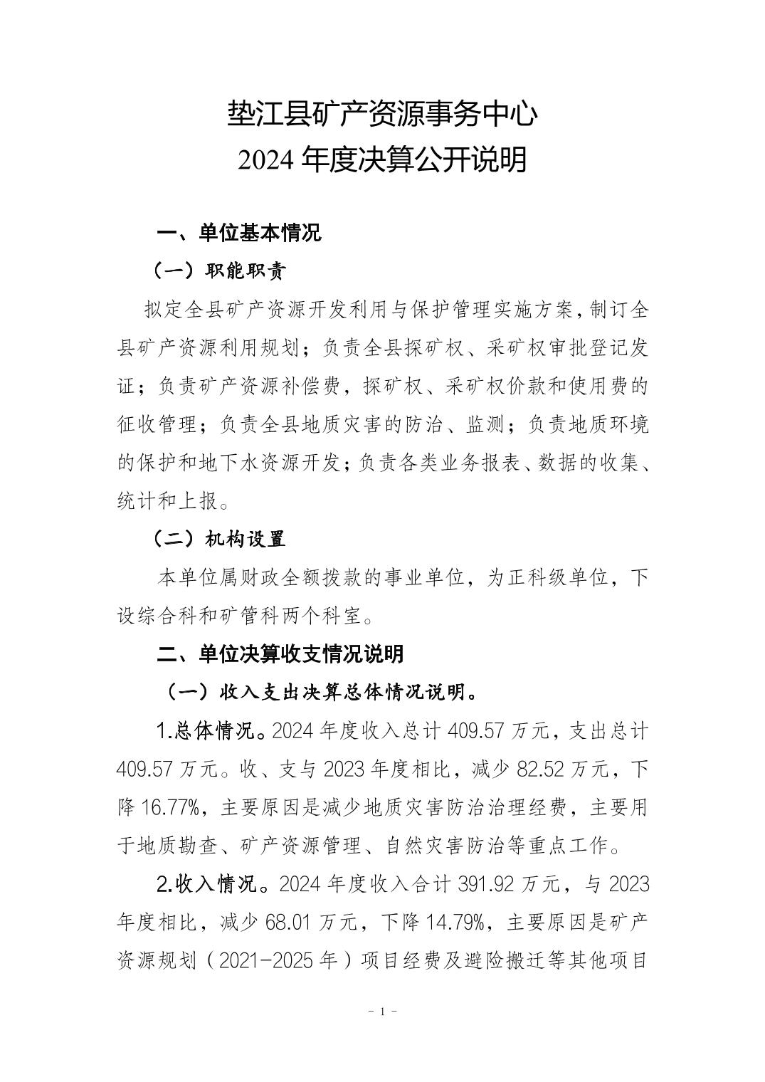 垫江县矿产资源事务中心2024年度决算公开说明.docx垫江县矿产资源事务中心2024年度决算公开说明.pdf