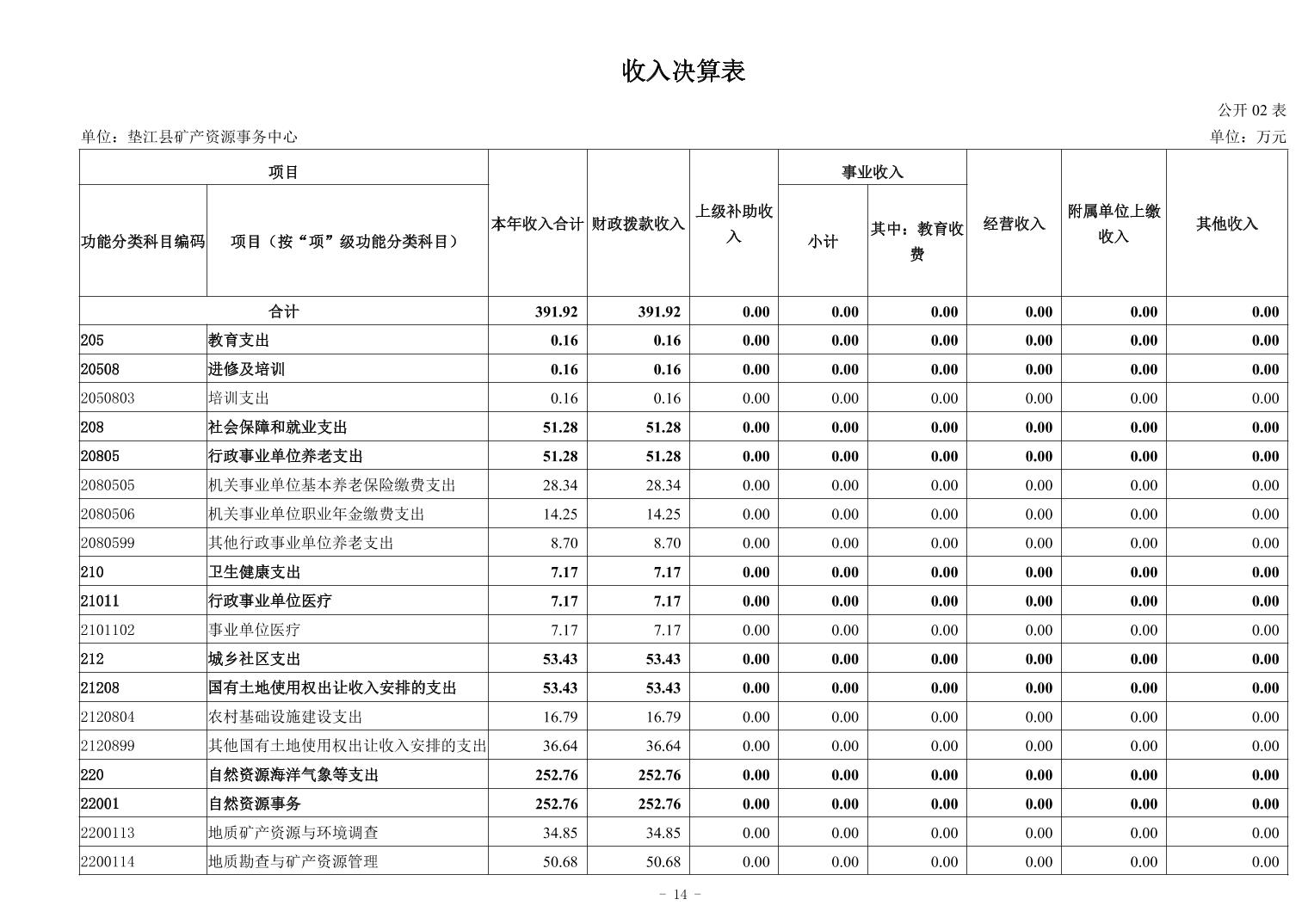 您当前的位置:首页>规划和自然资源局>政务公开>法定主动公开内容>预算/决算>决算公开