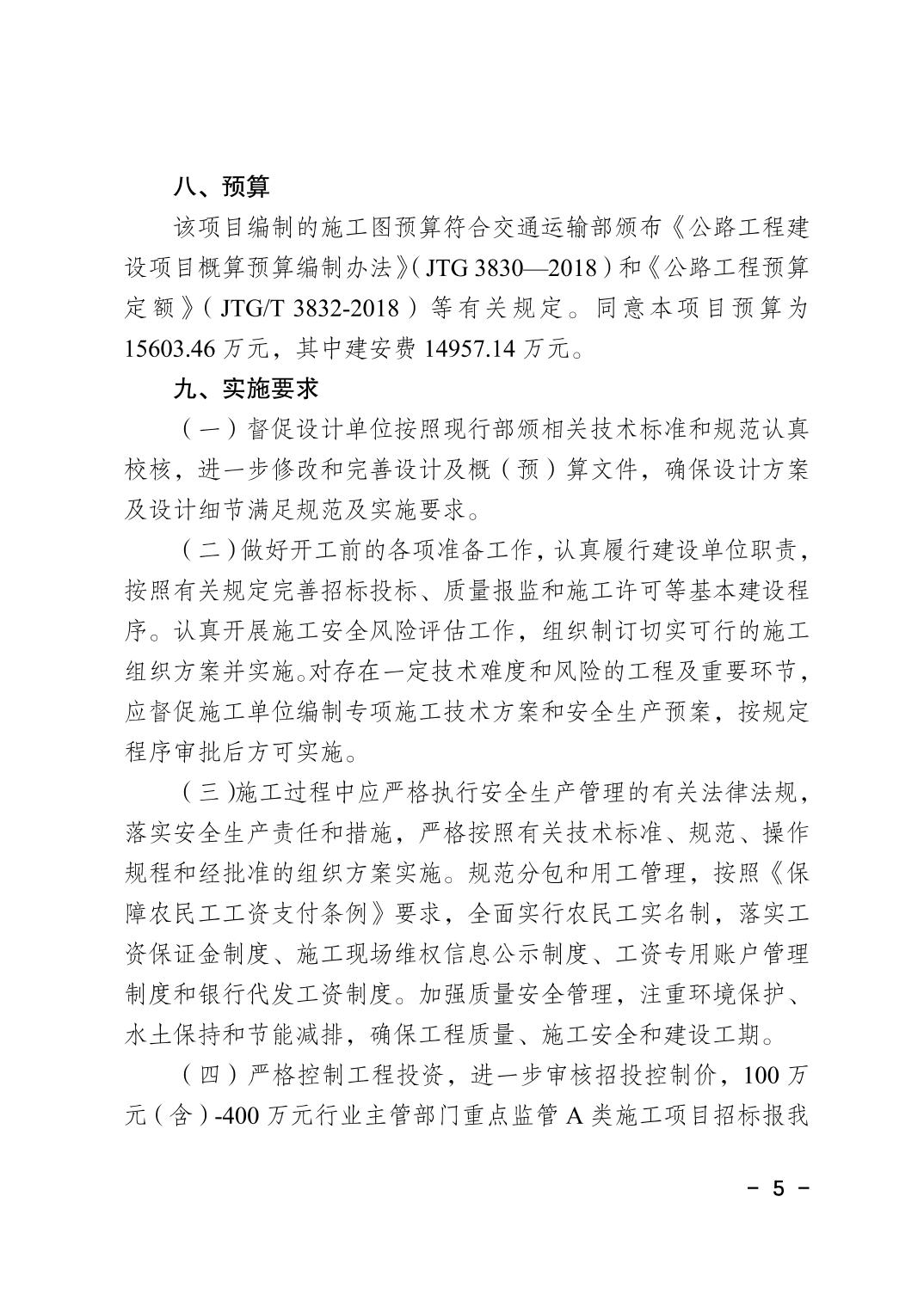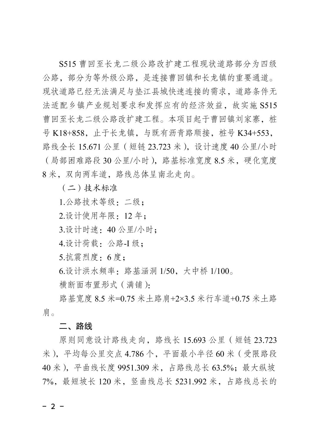 垫江县交通运输委员会关于S515曹回至长龙二级公路改扩建工程施工图设计的批复
