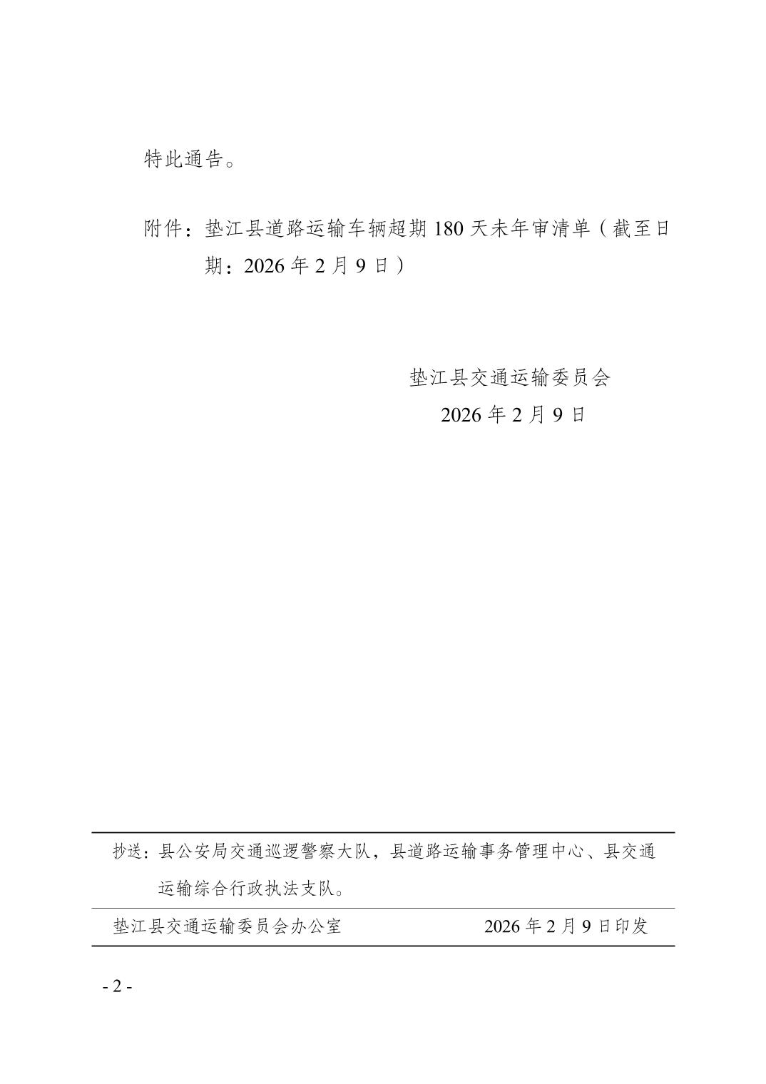 垫江县道路运输车辆超期180天未年审清单 (截止时间2月9日).xlsx