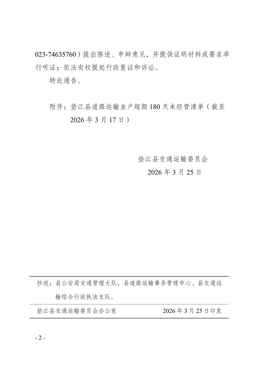 附件:垫江县道路运输业户超期180天未经营清单(截止日期:2026年3月17日).xlsx