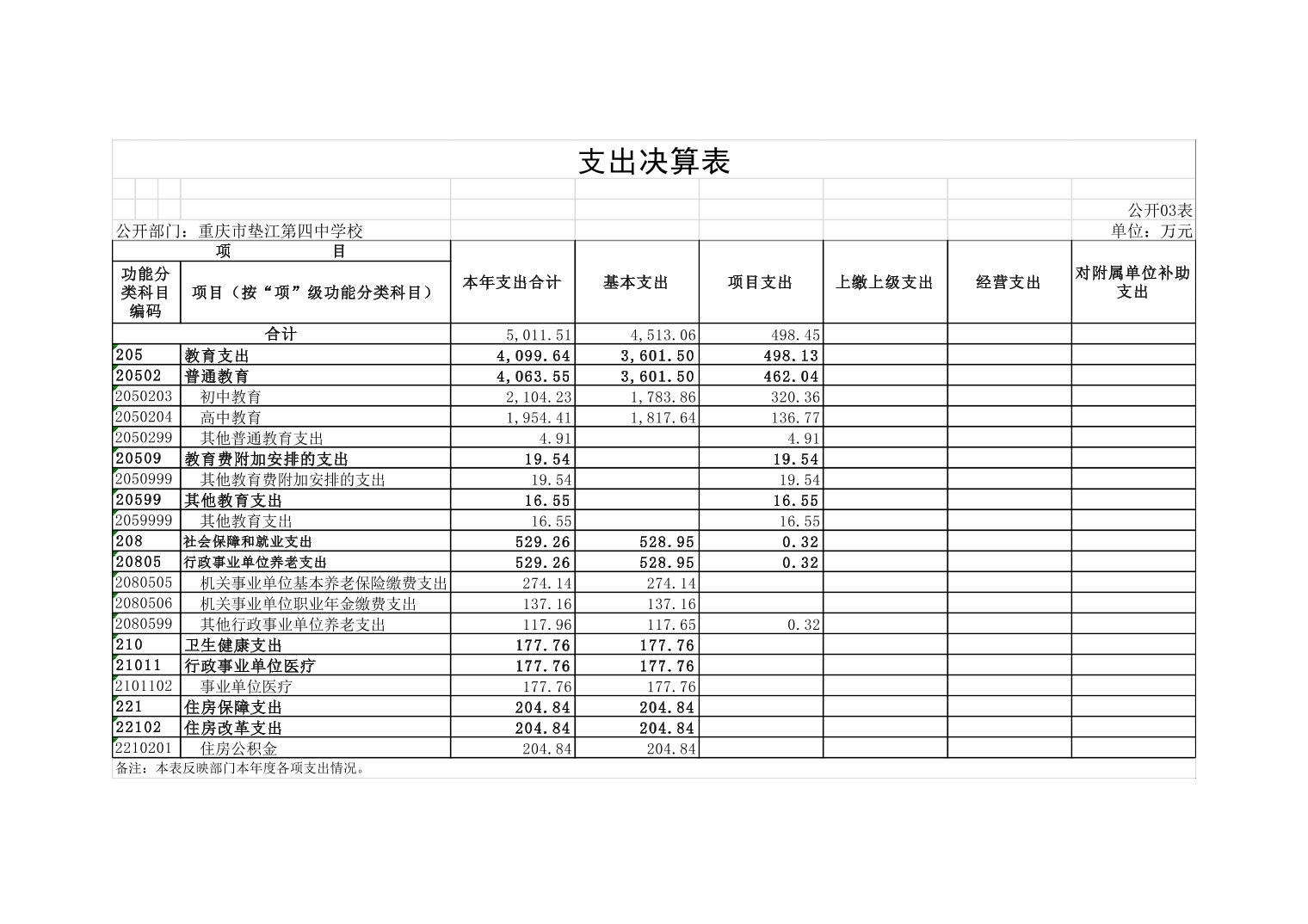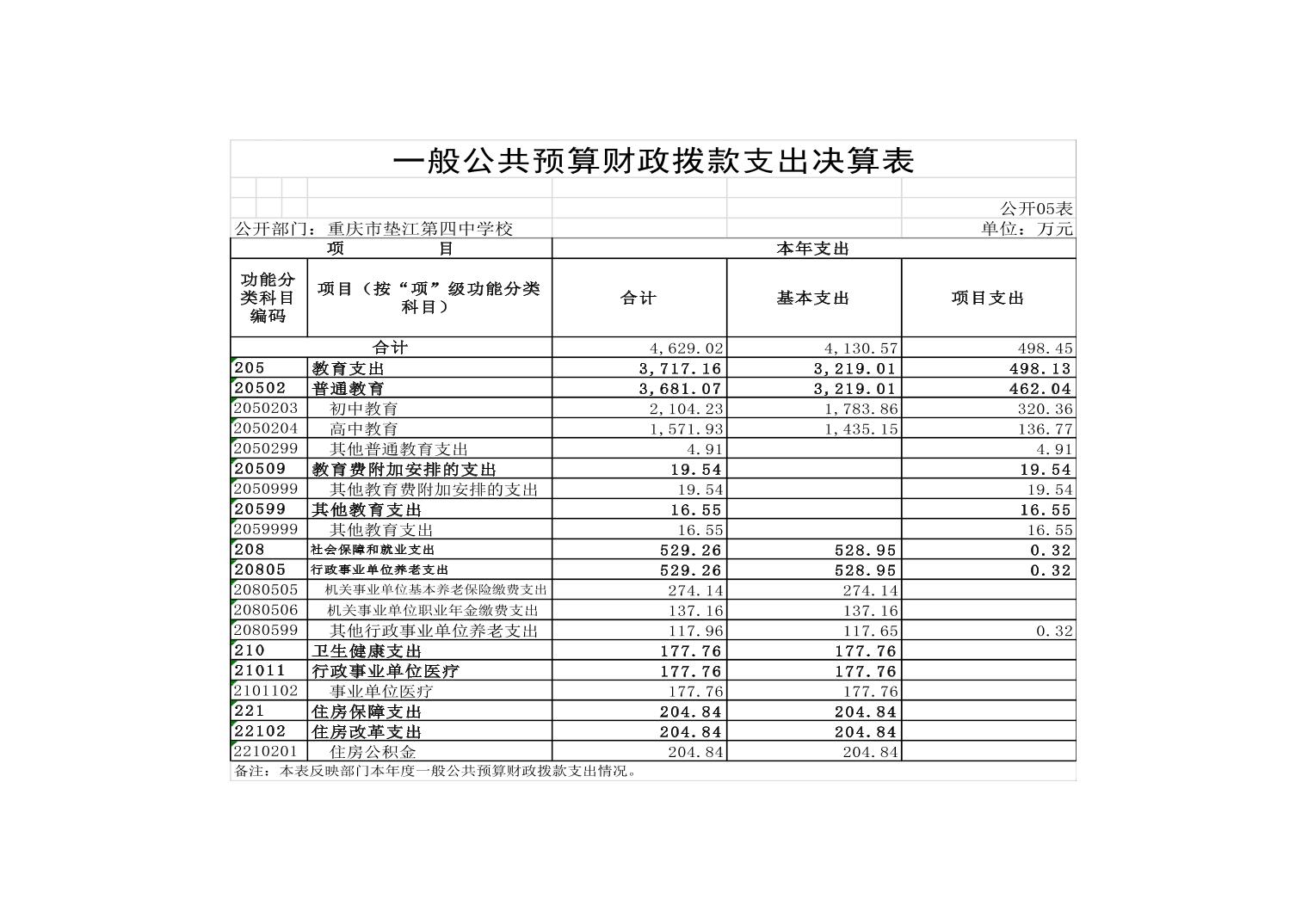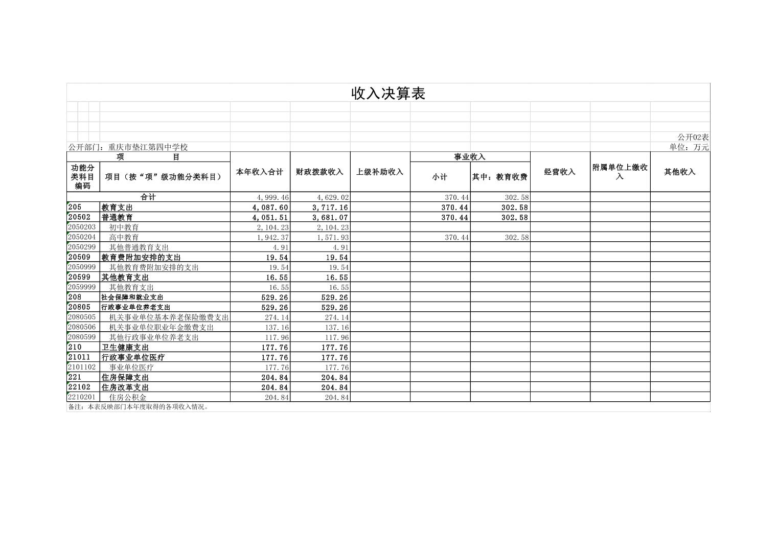 重庆市垫江第四中学校2022年决算公开