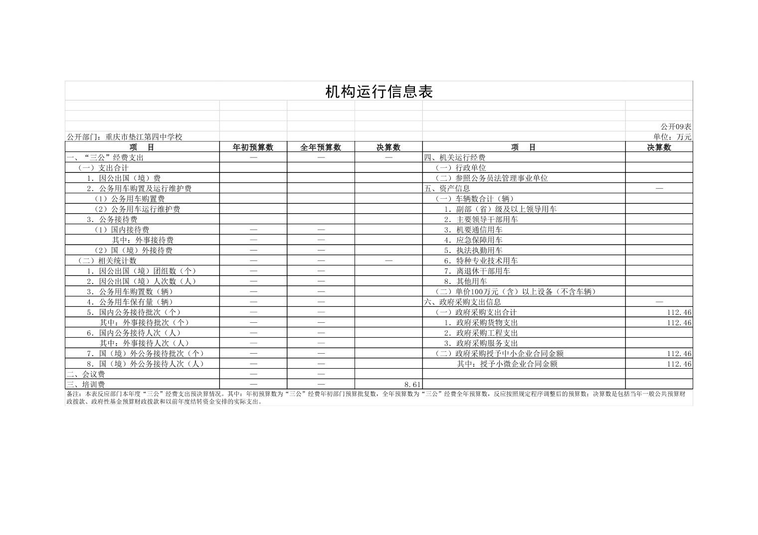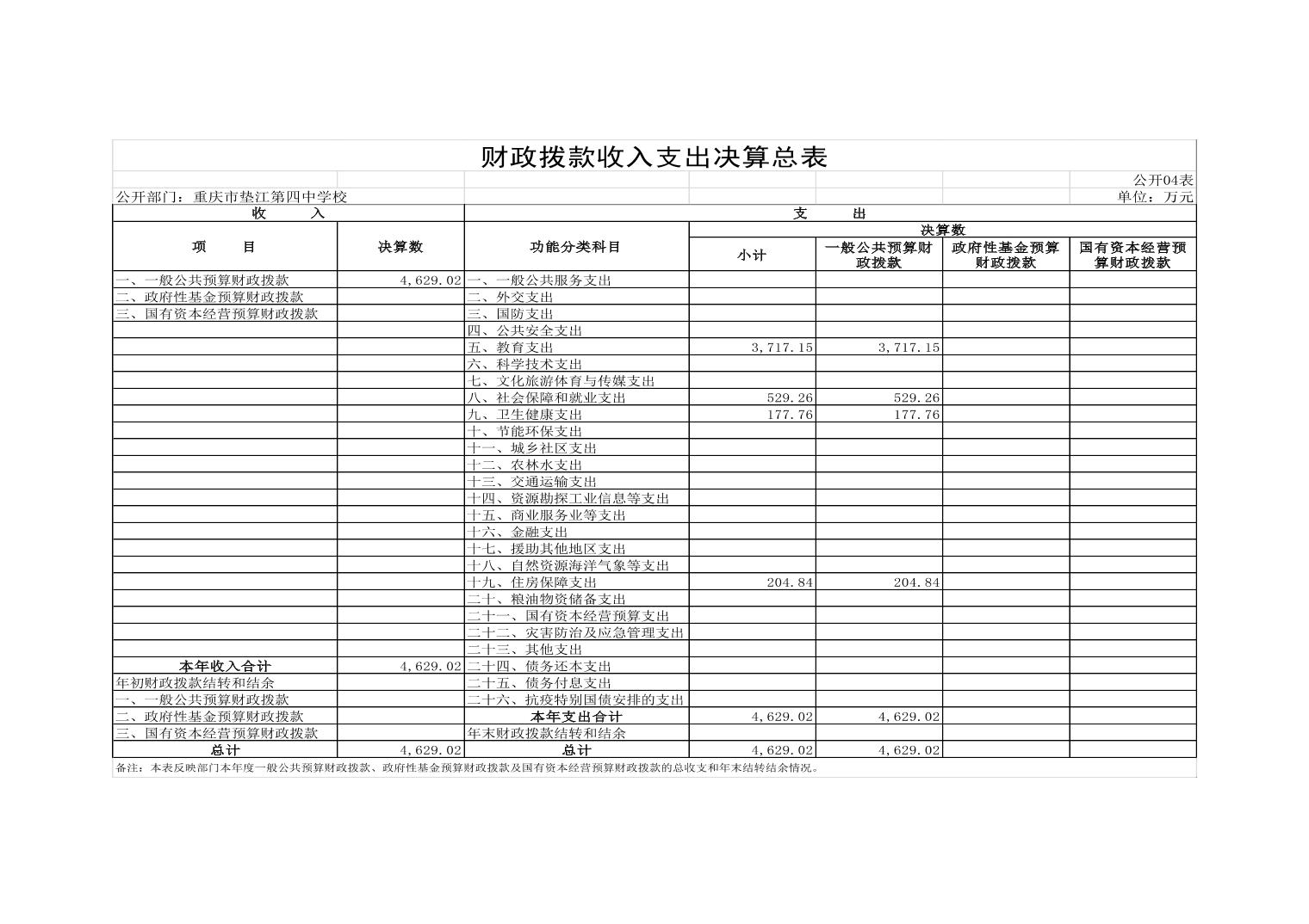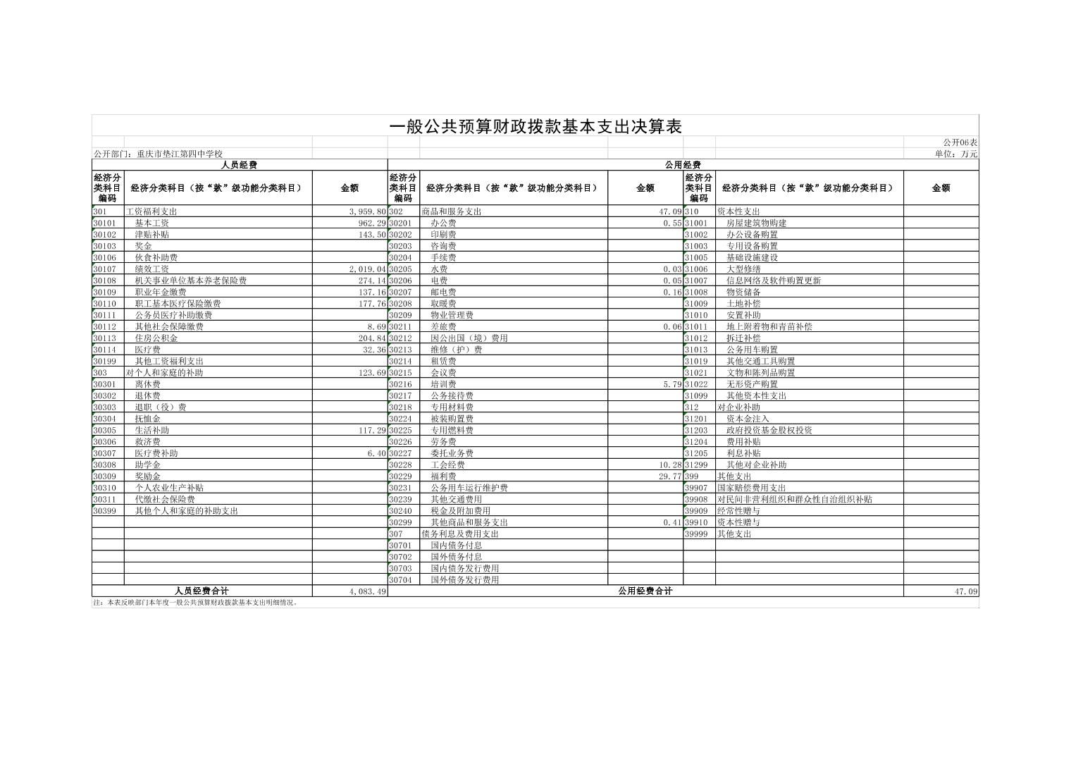 重庆市垫江第四中学校2022年决算公开