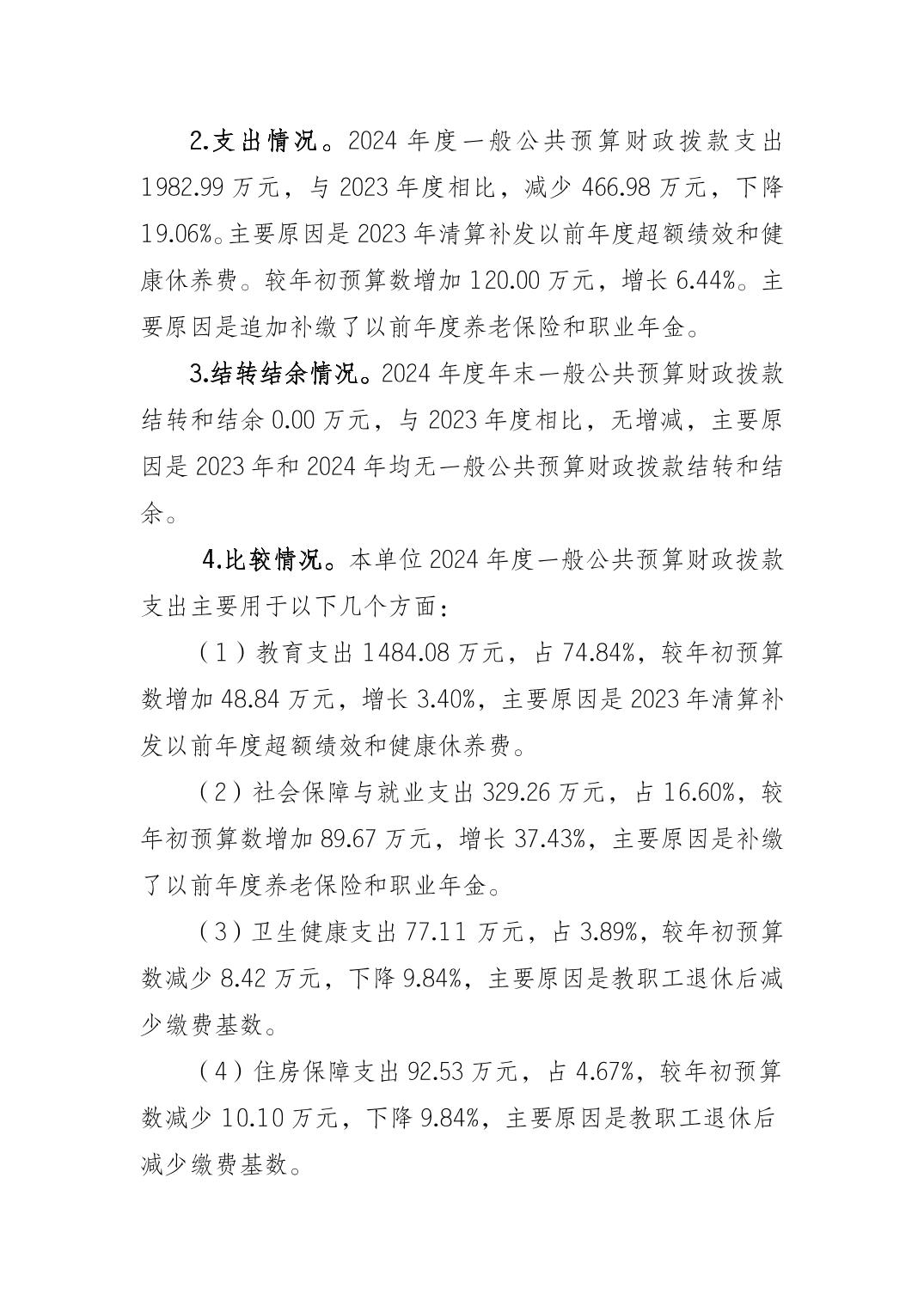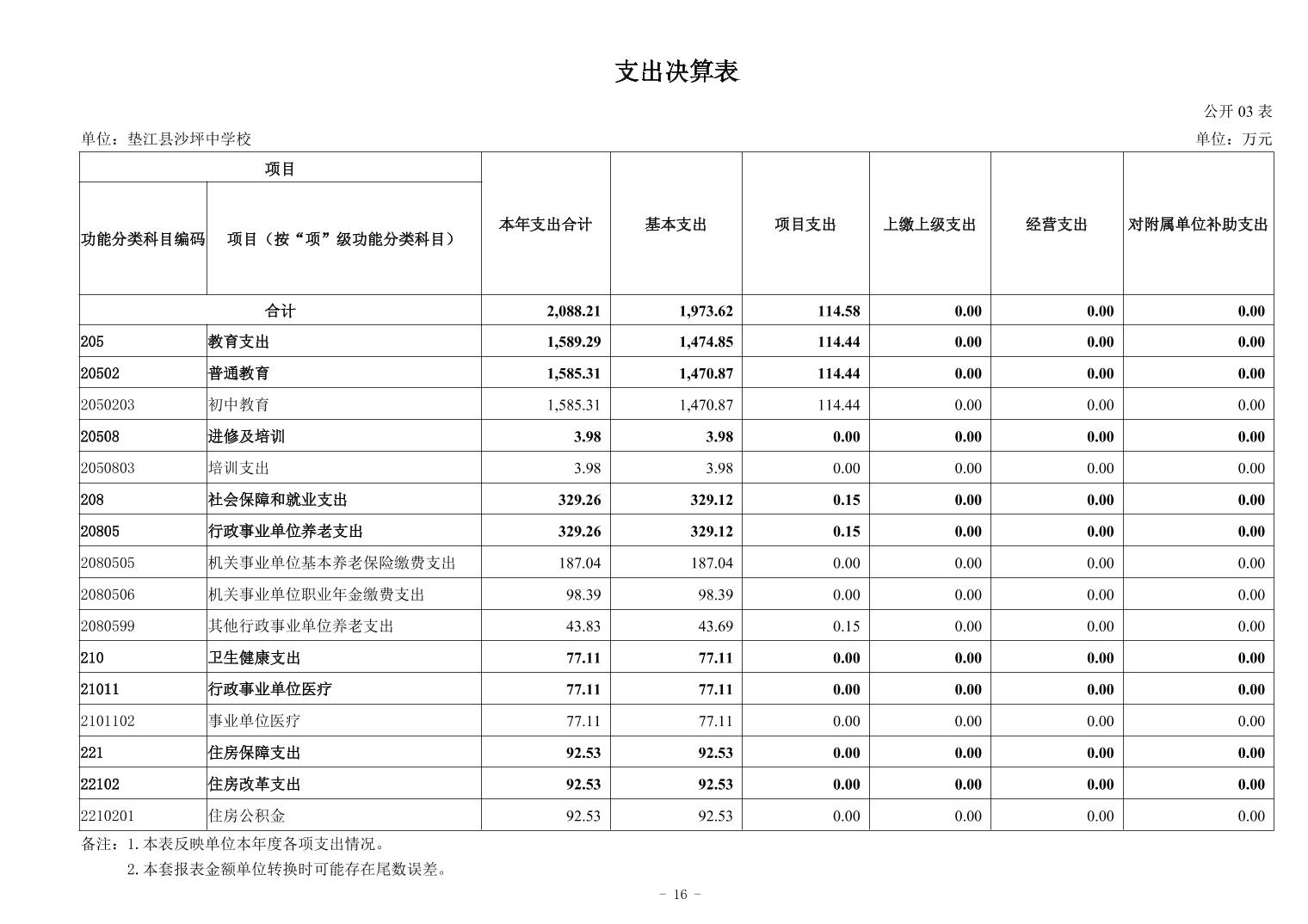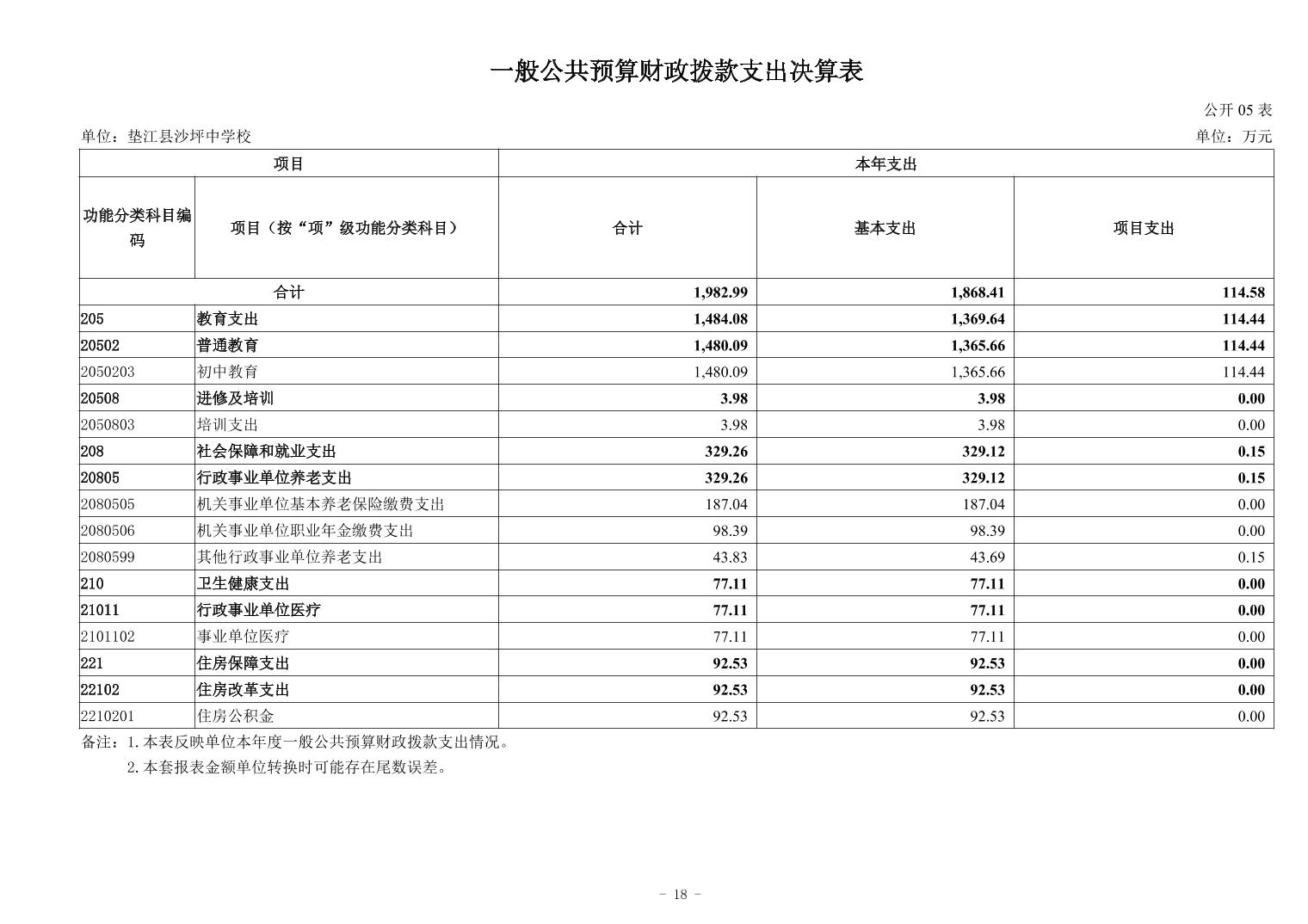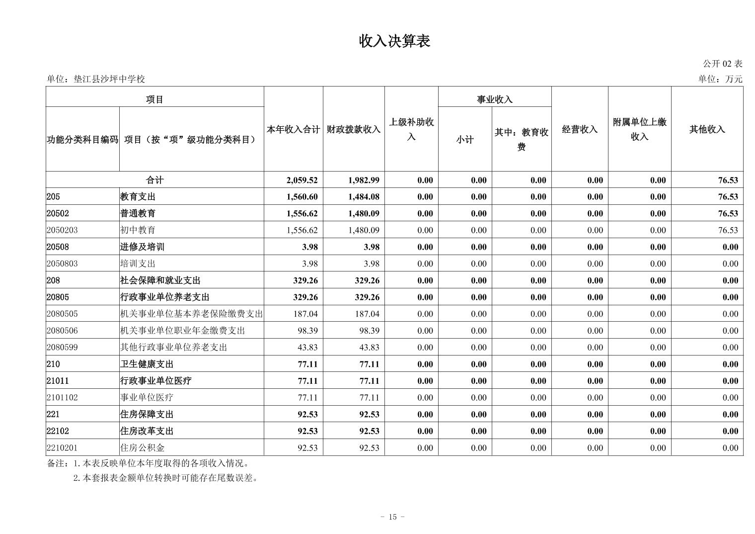 垫江县沙坪中学校2024年决算公开