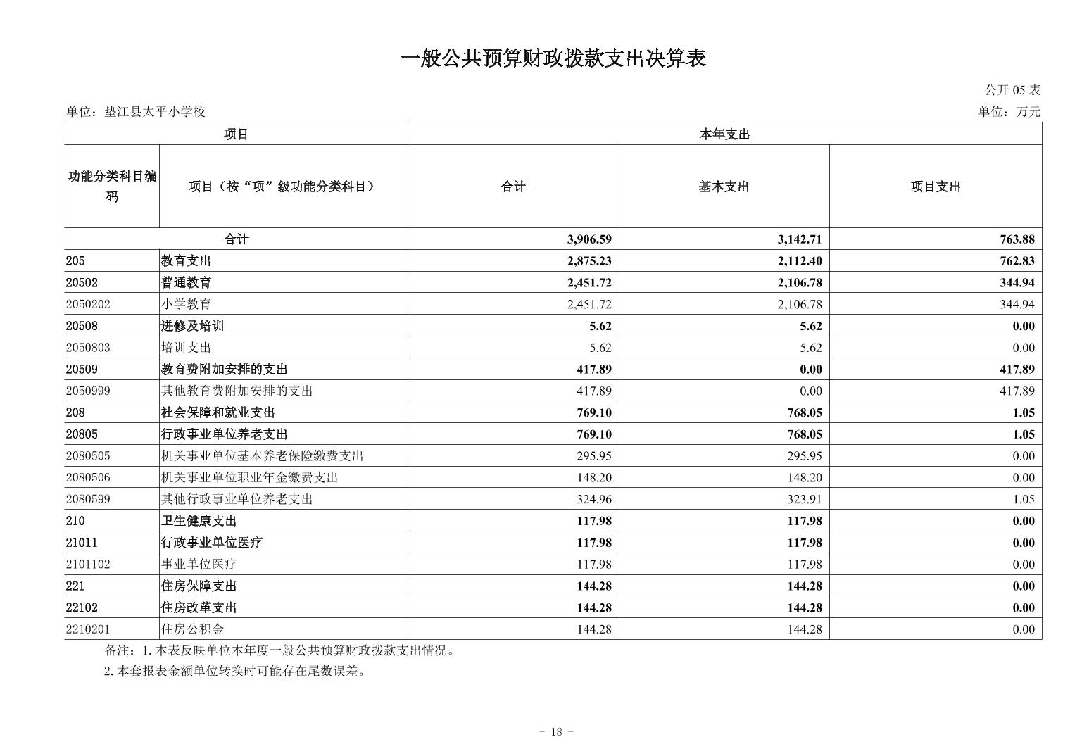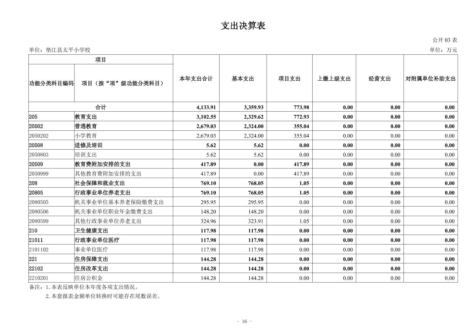 垫江县太平小学校2024年决算公开
