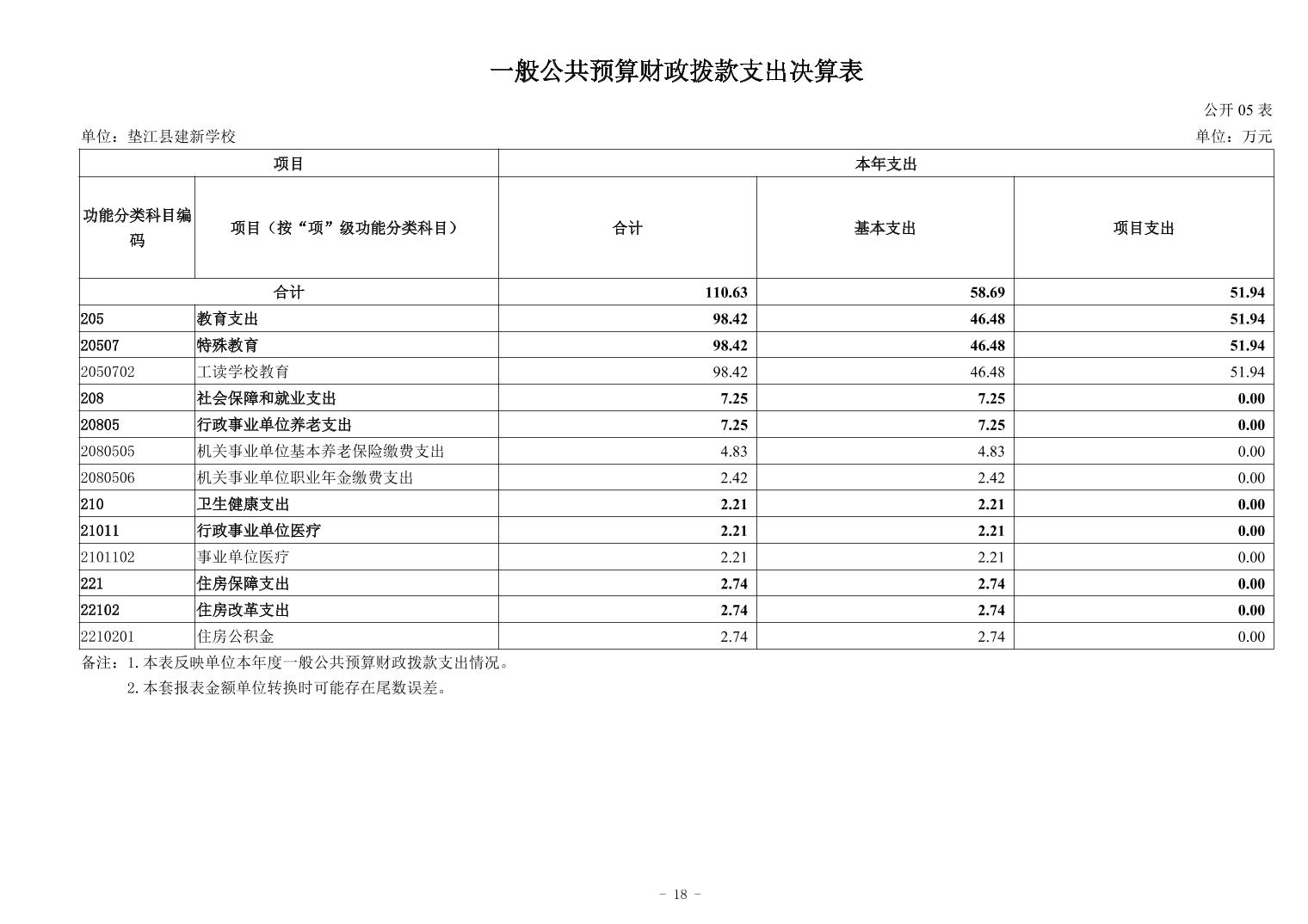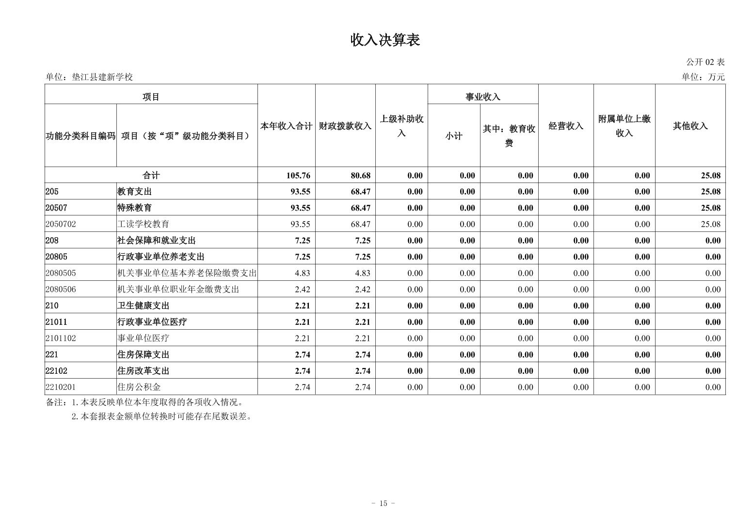 垫江县建新学校2024年决算公开
