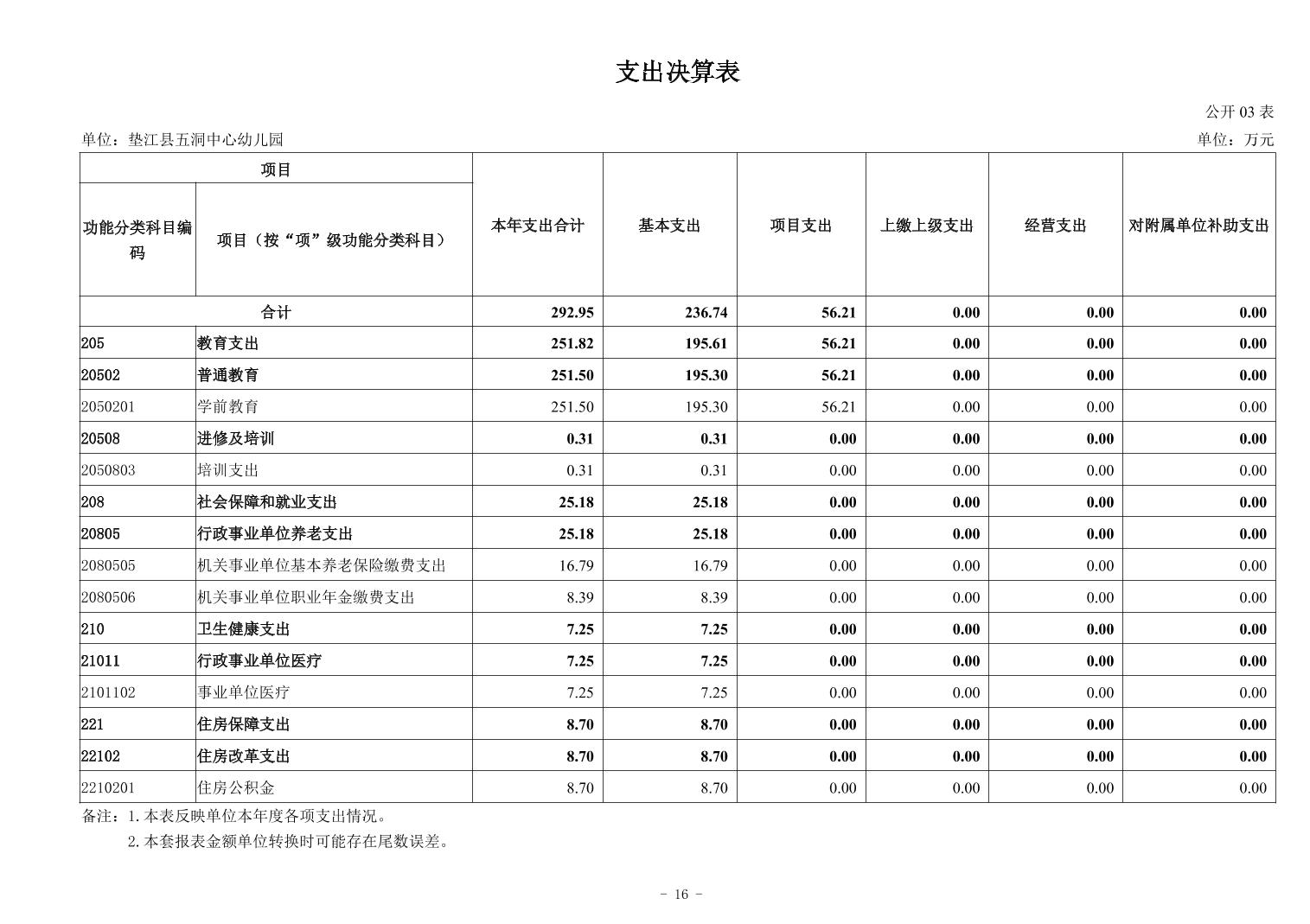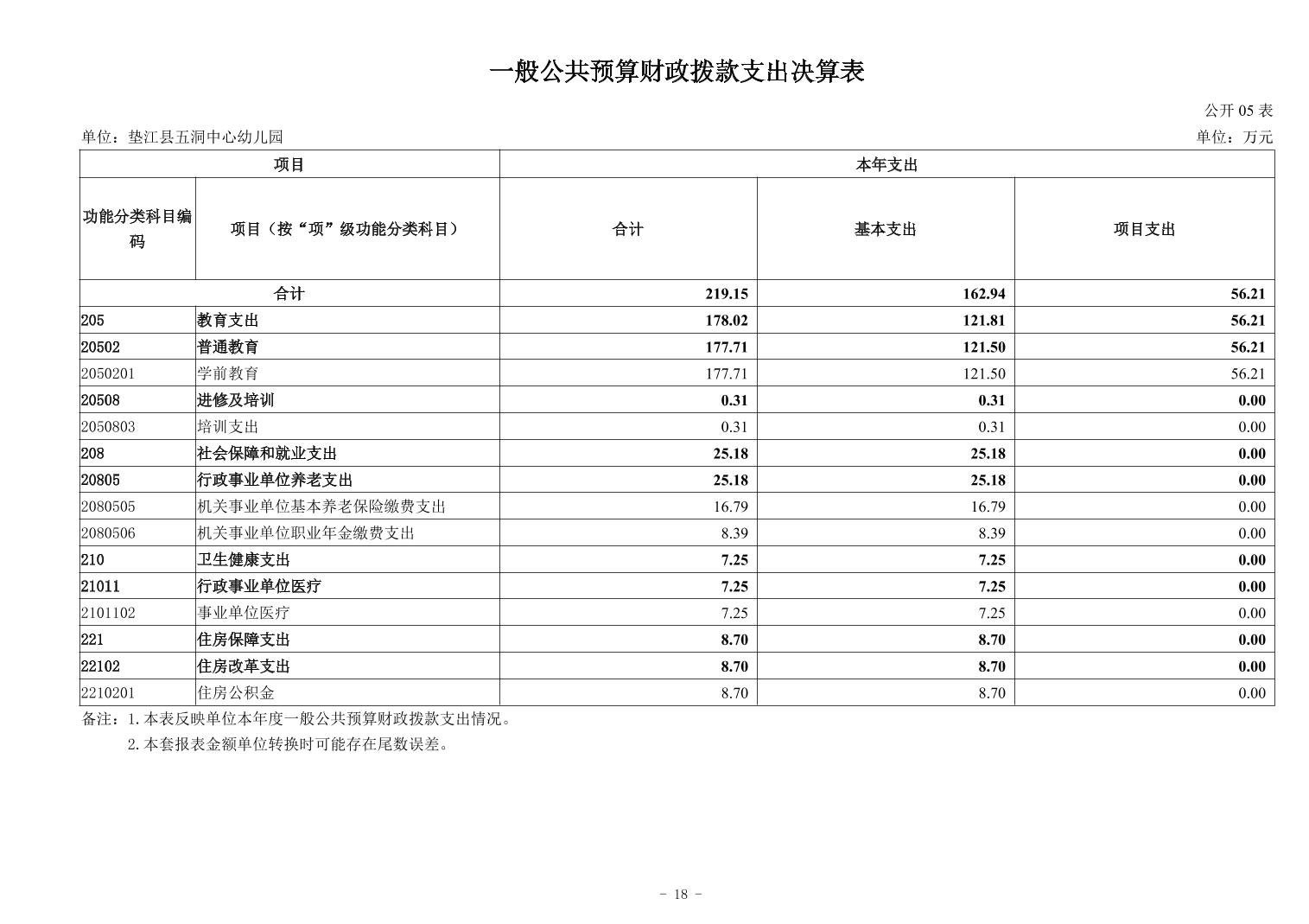 垫江县五洞中心幼儿园2024年决算公开