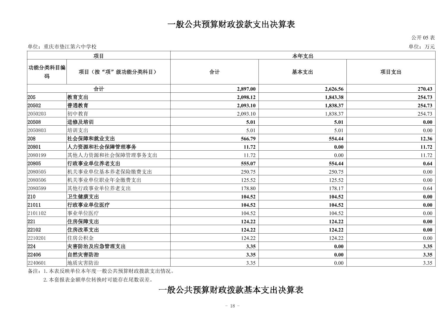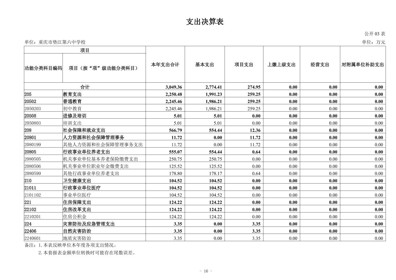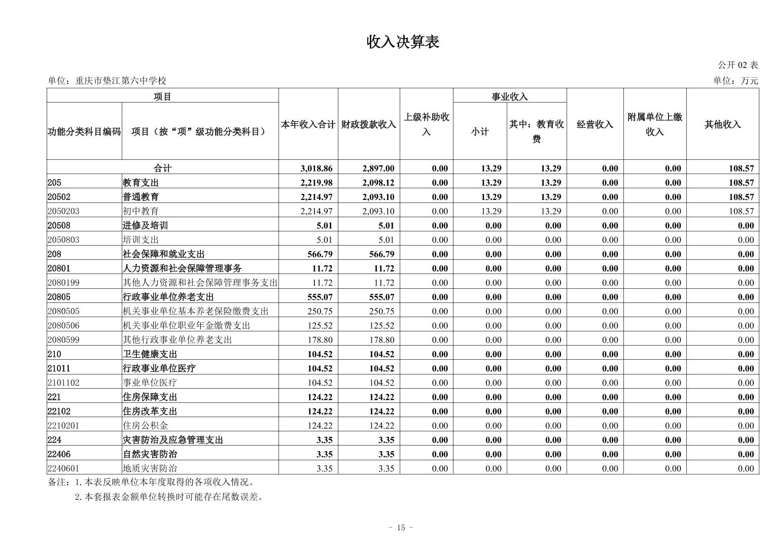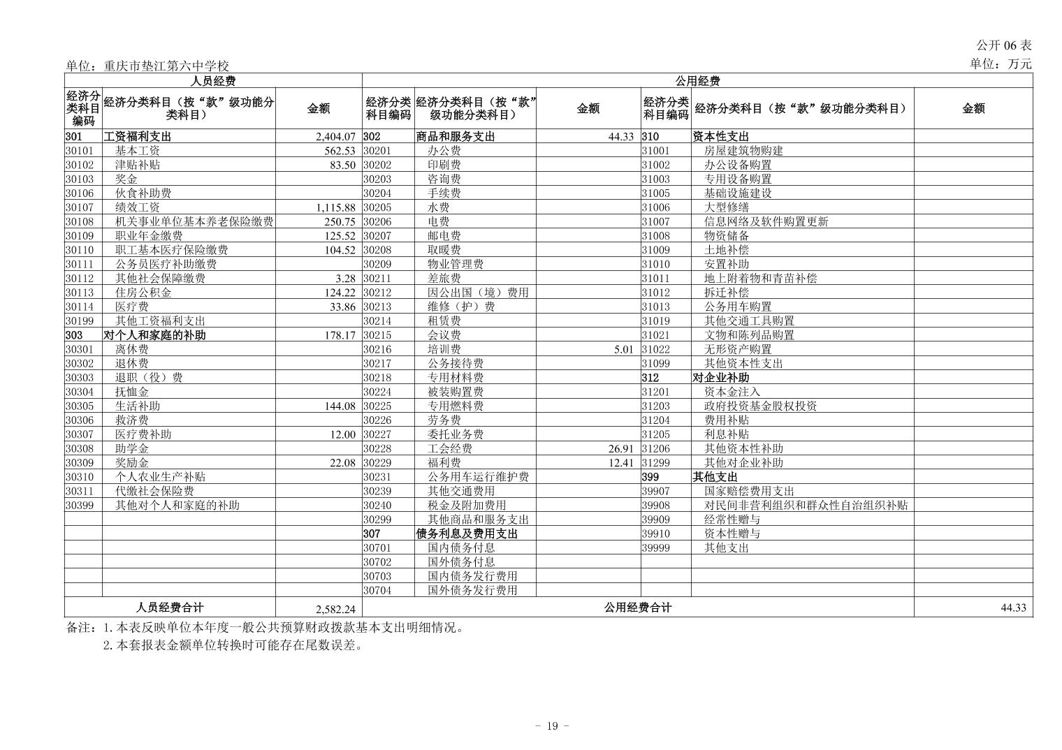 重庆市垫江第六中学校2024年决算公开