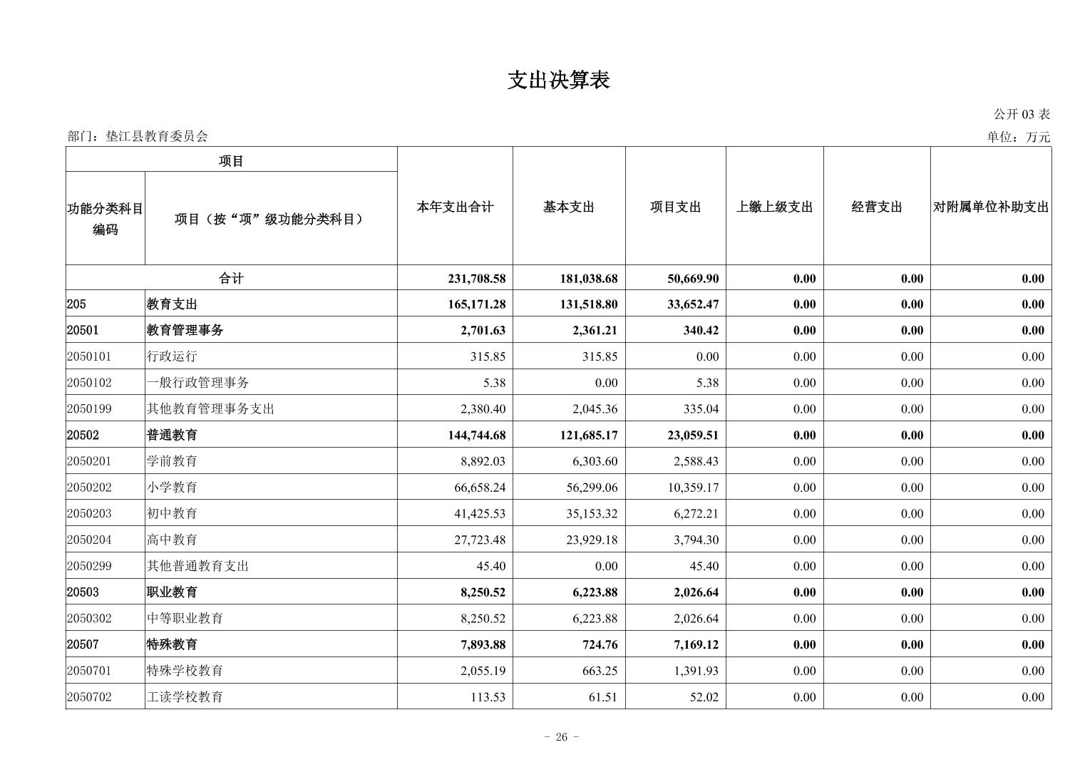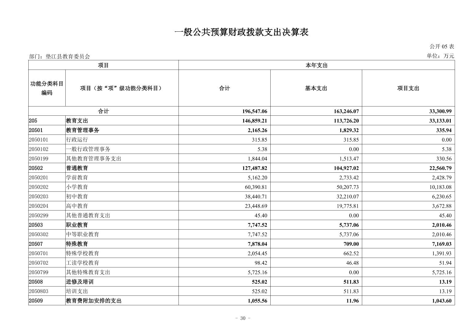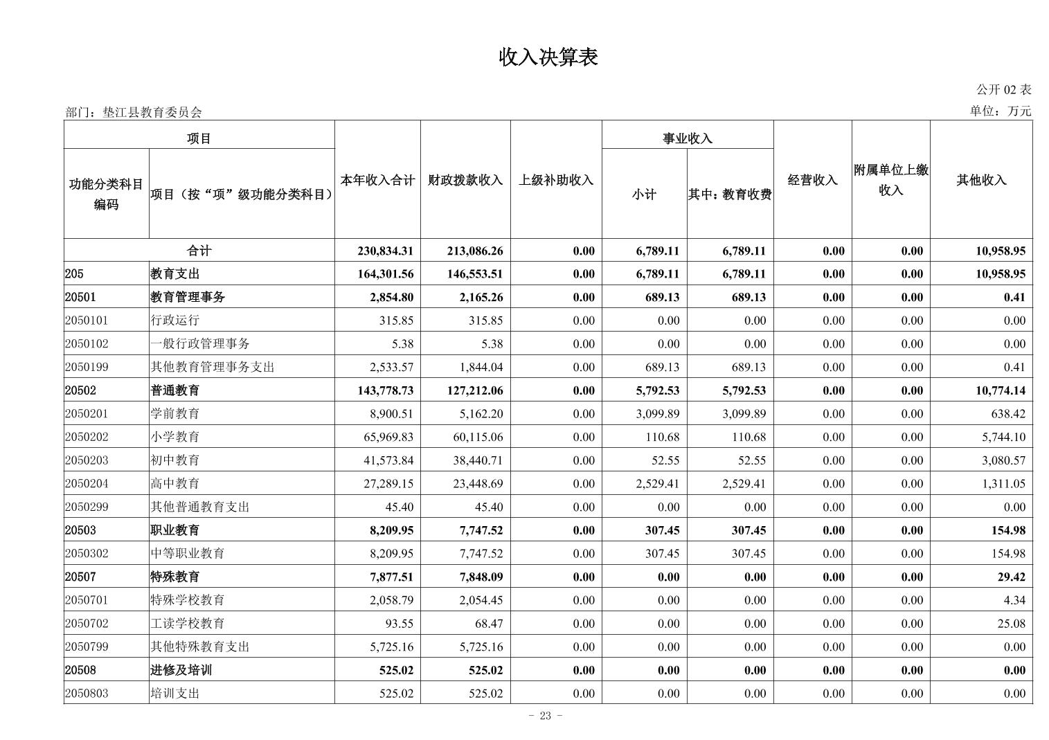 重庆市垫江县教育委员会2024年决算公开