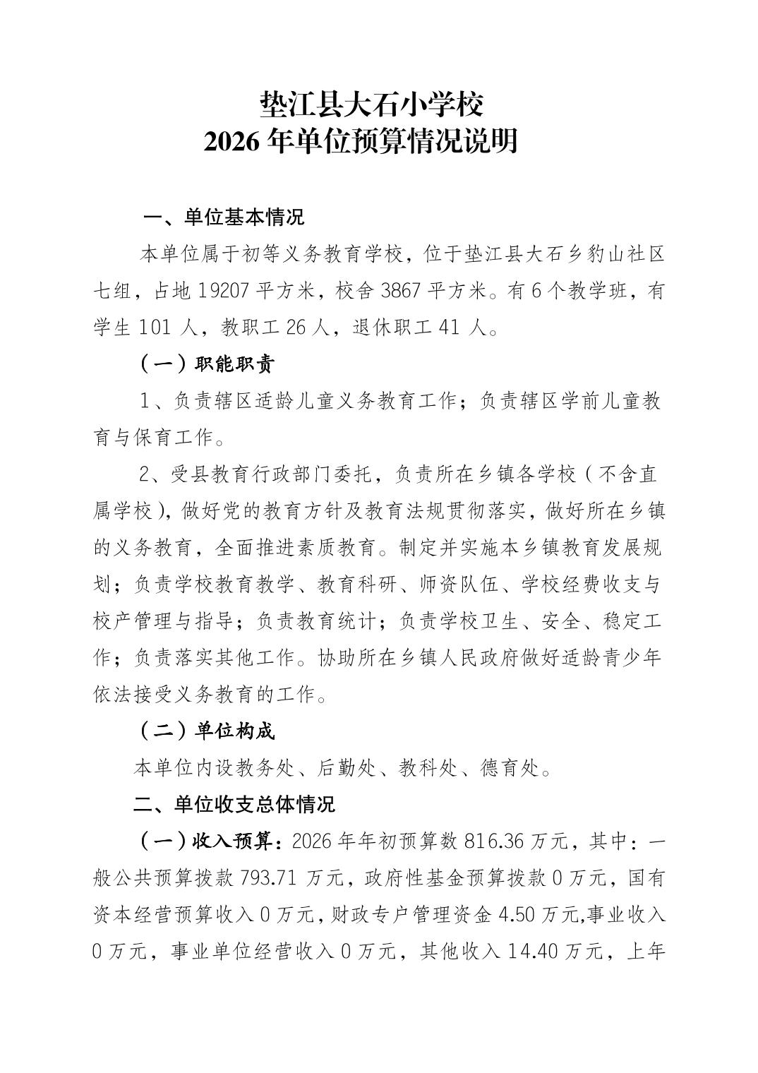 垫江县大石小学校2026年单位预算情况说明.doc垫江县大石小学校2026年单位预算情况说明.pdf