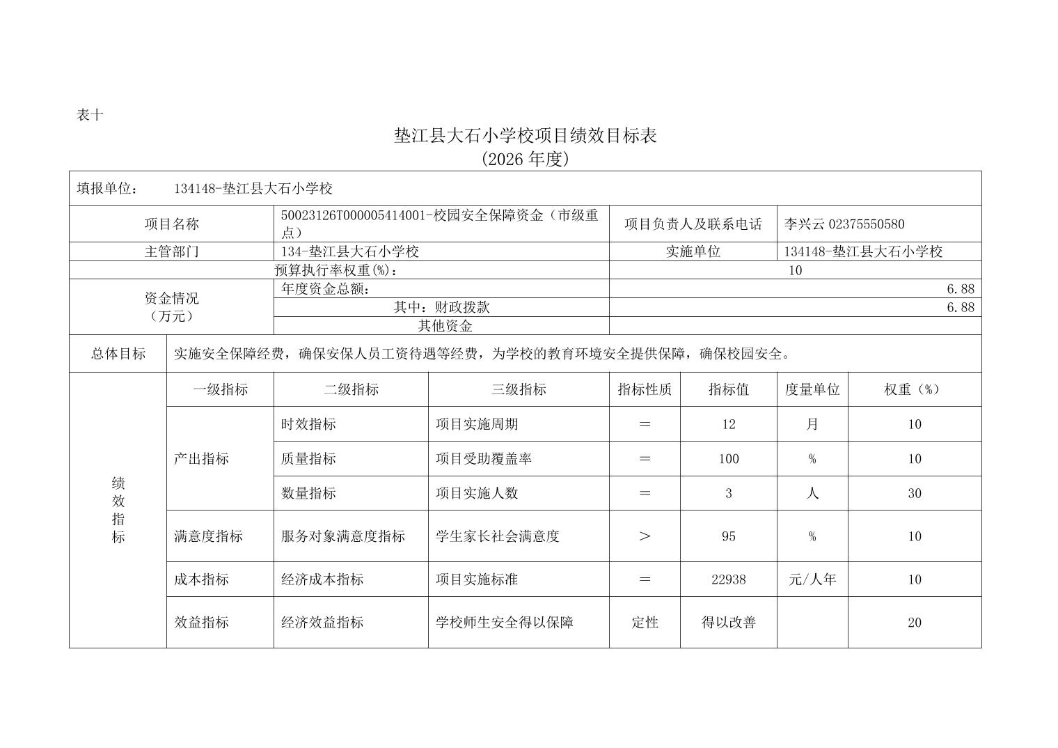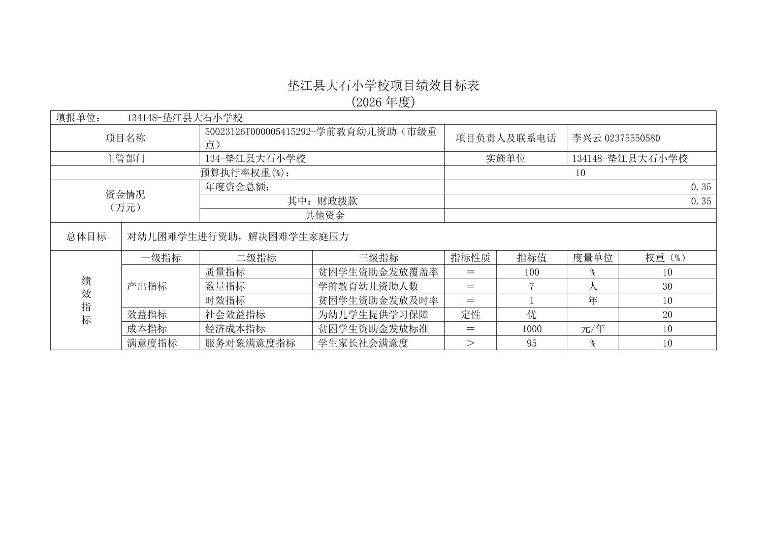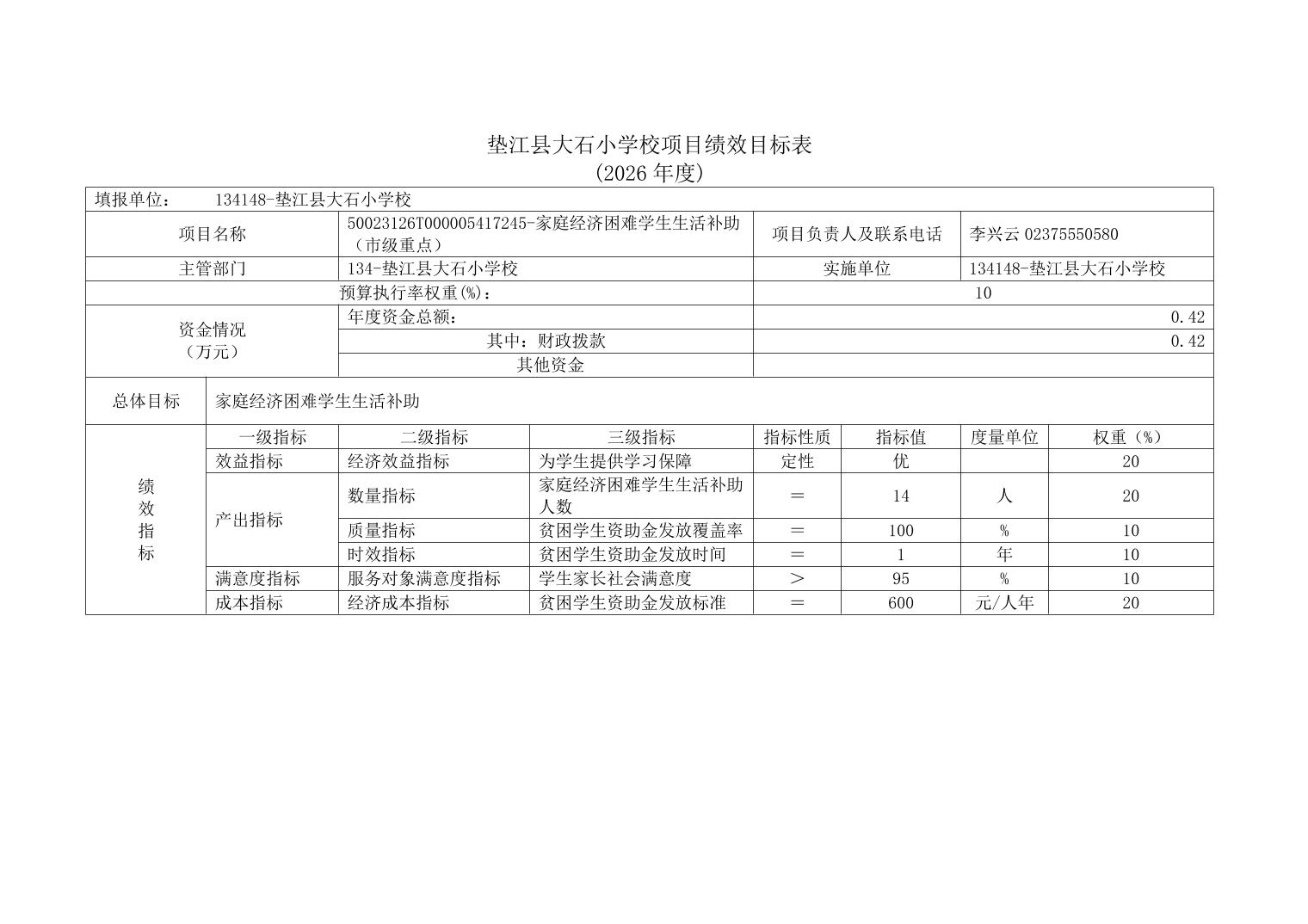 垫江县大石小学校2026年单位预算情况说明